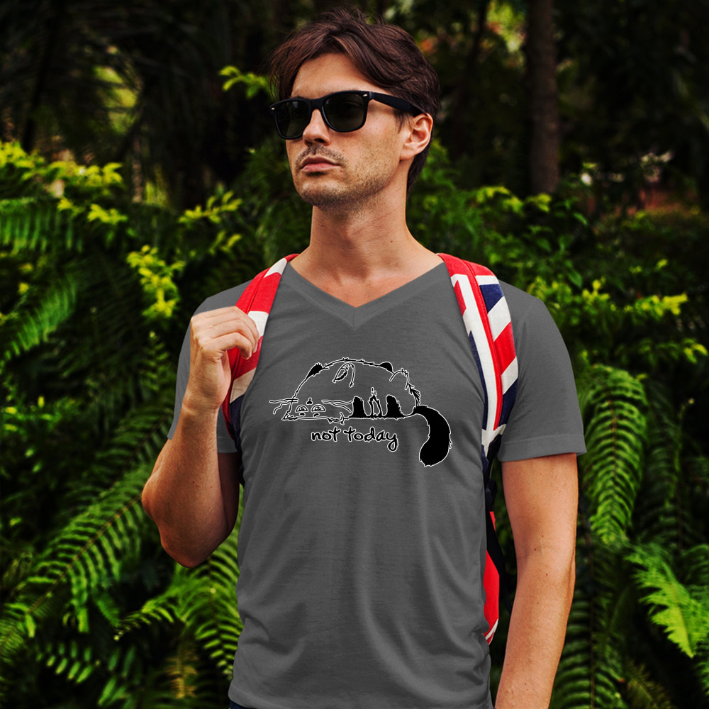 LAZY KITTY NOT TODAY v-neck t-shirt kitten cat lovers funny tee charcoal