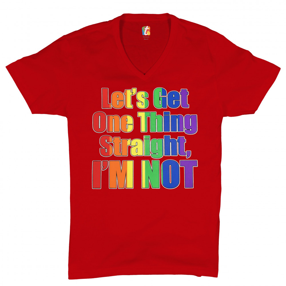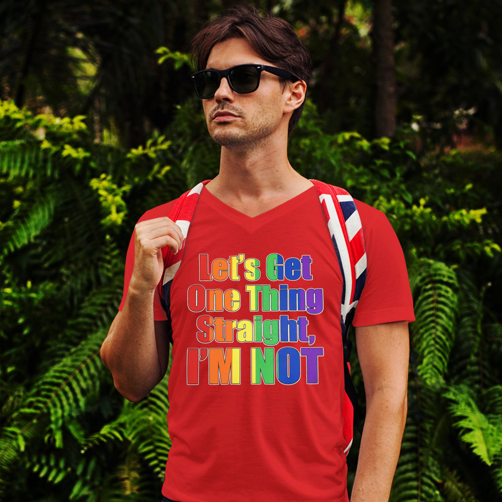 LET'S GET ONE THING STRAIGHT, I'M NOT v-neck t-shirt lgbt gay rainbow tee red
