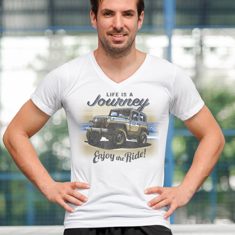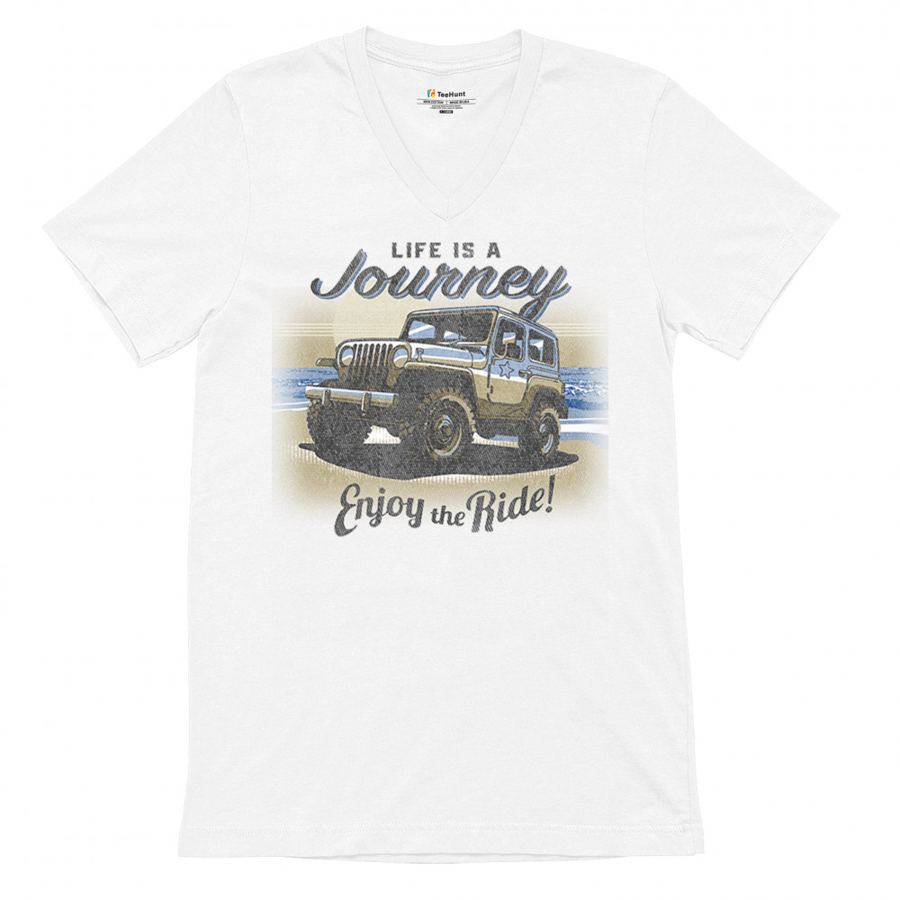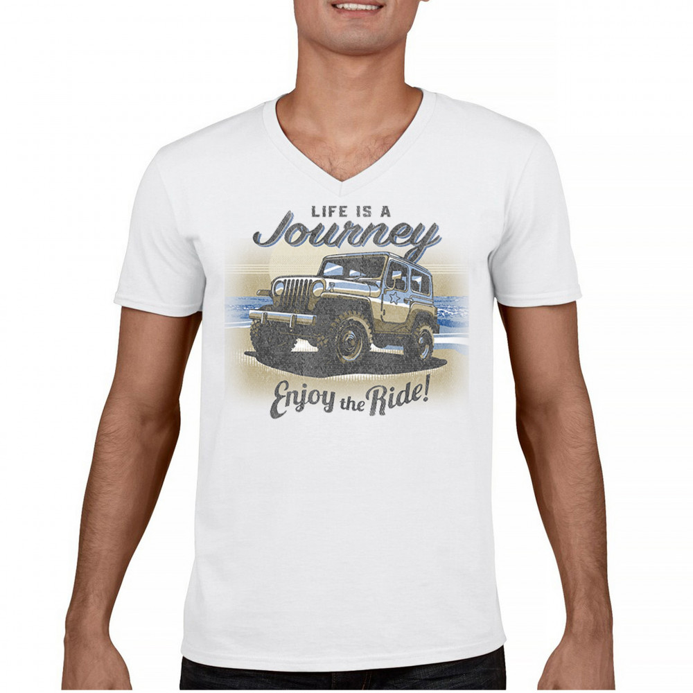 LIFE IS A JOURNEY ENJOY THE RIDE v-neck t-shirt 4x4 offroad mudding tee white