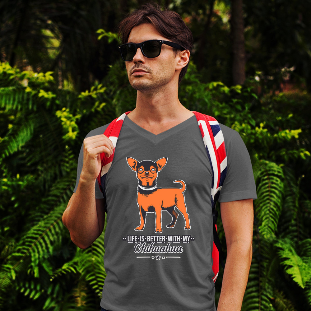 LIFE IS BETTER WITH MY CHIHUAHUA v-neck t-shirt toy dog lover cute pet tee charcoal