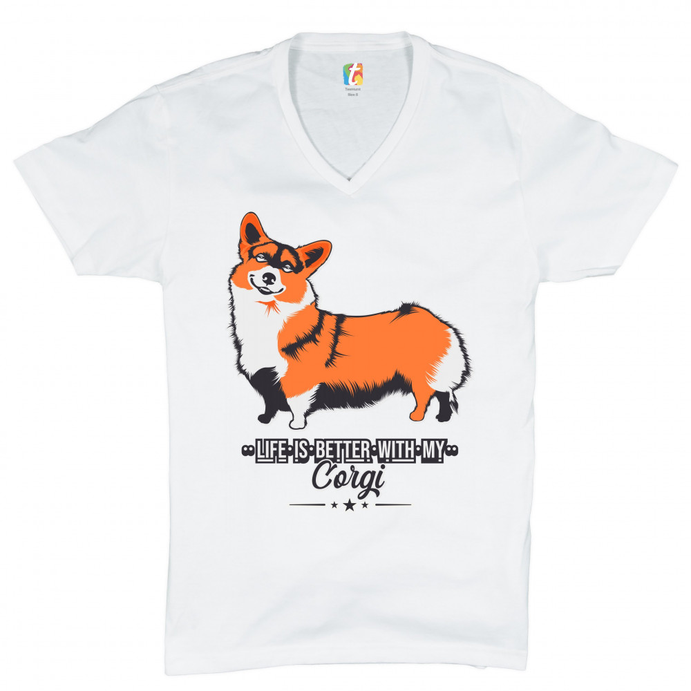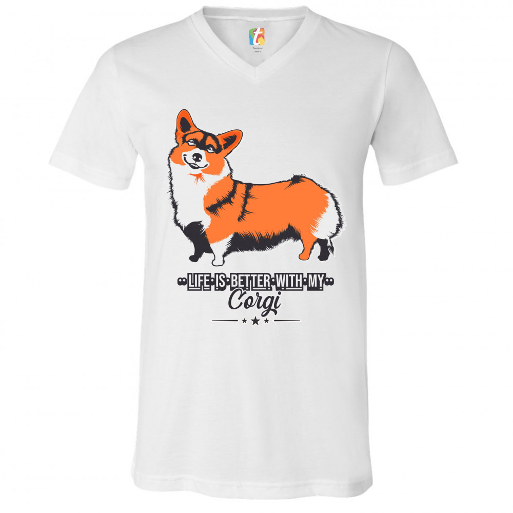 LIFE IS BETTER WITH MY CORGI v-neck t-shirt pet best friend dog lover tee white