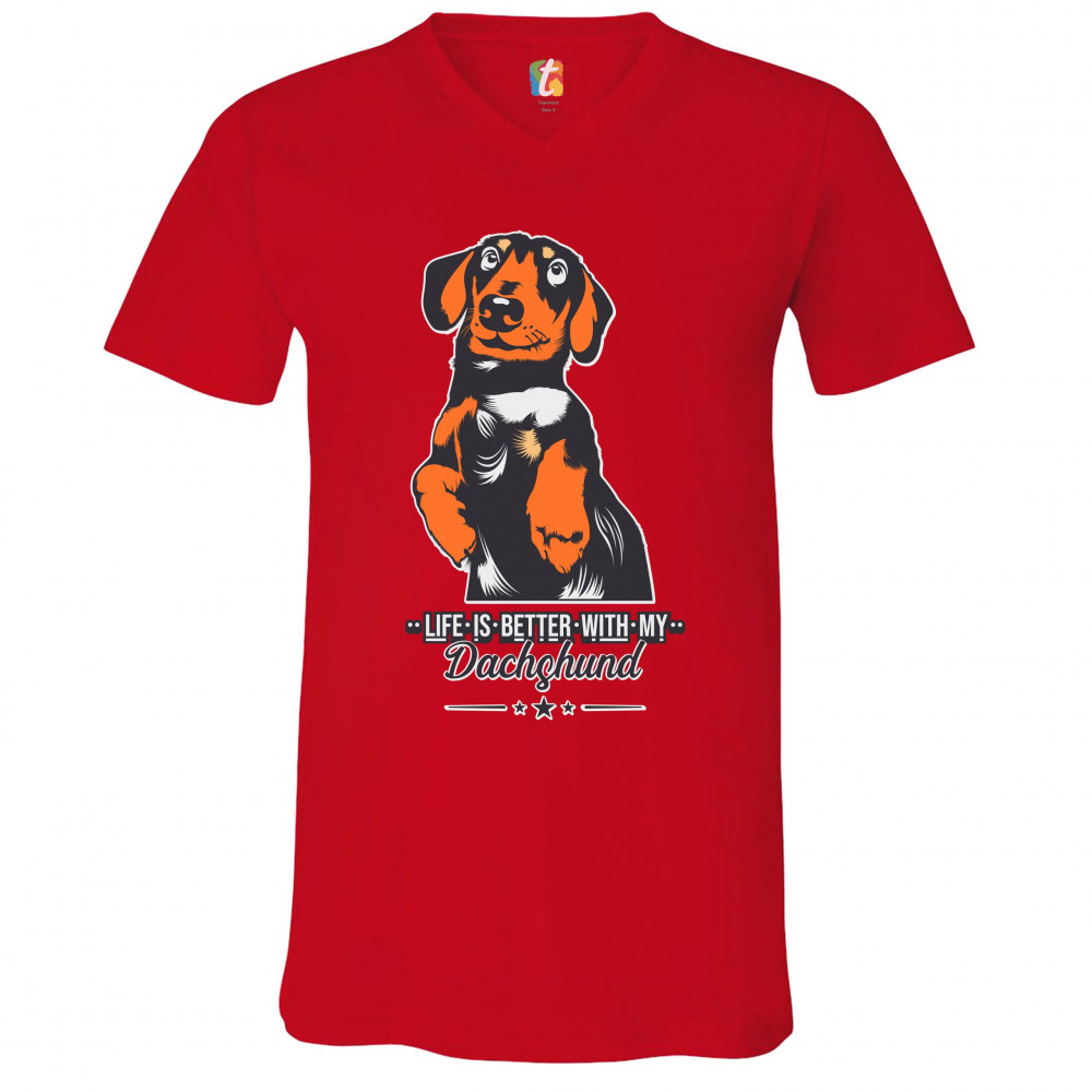 LIFE IS BETTER WITH MY DACHSUND v-neck t-shirt pet lover i love my dog tee red
