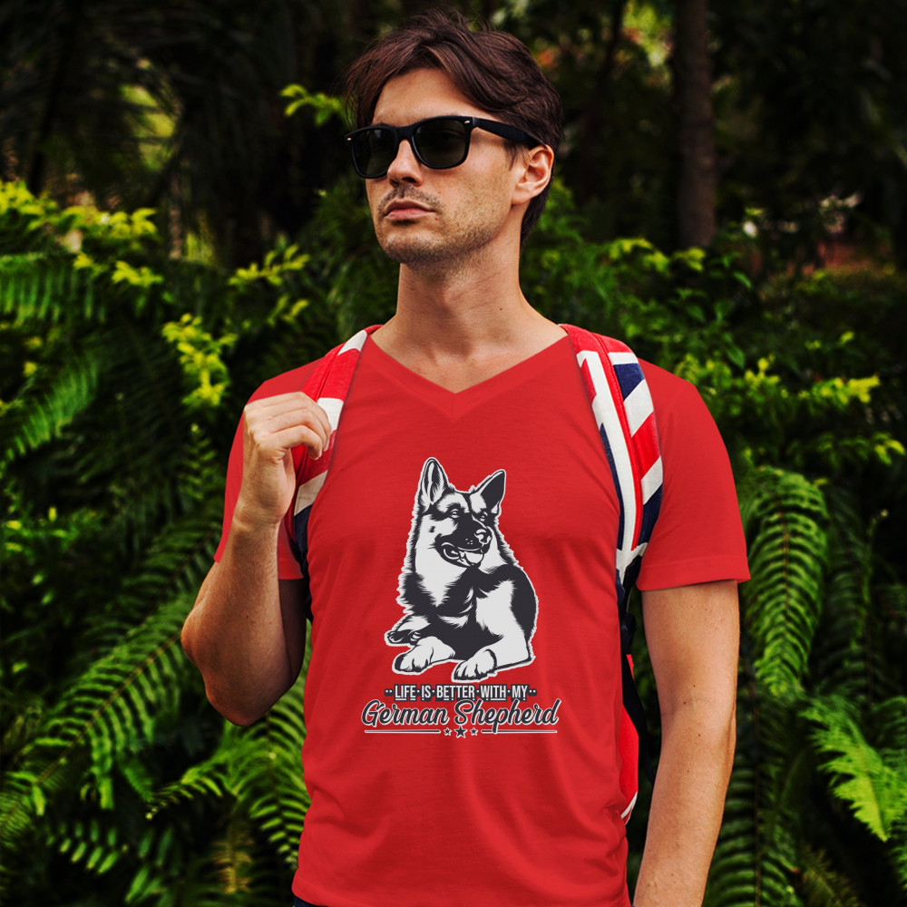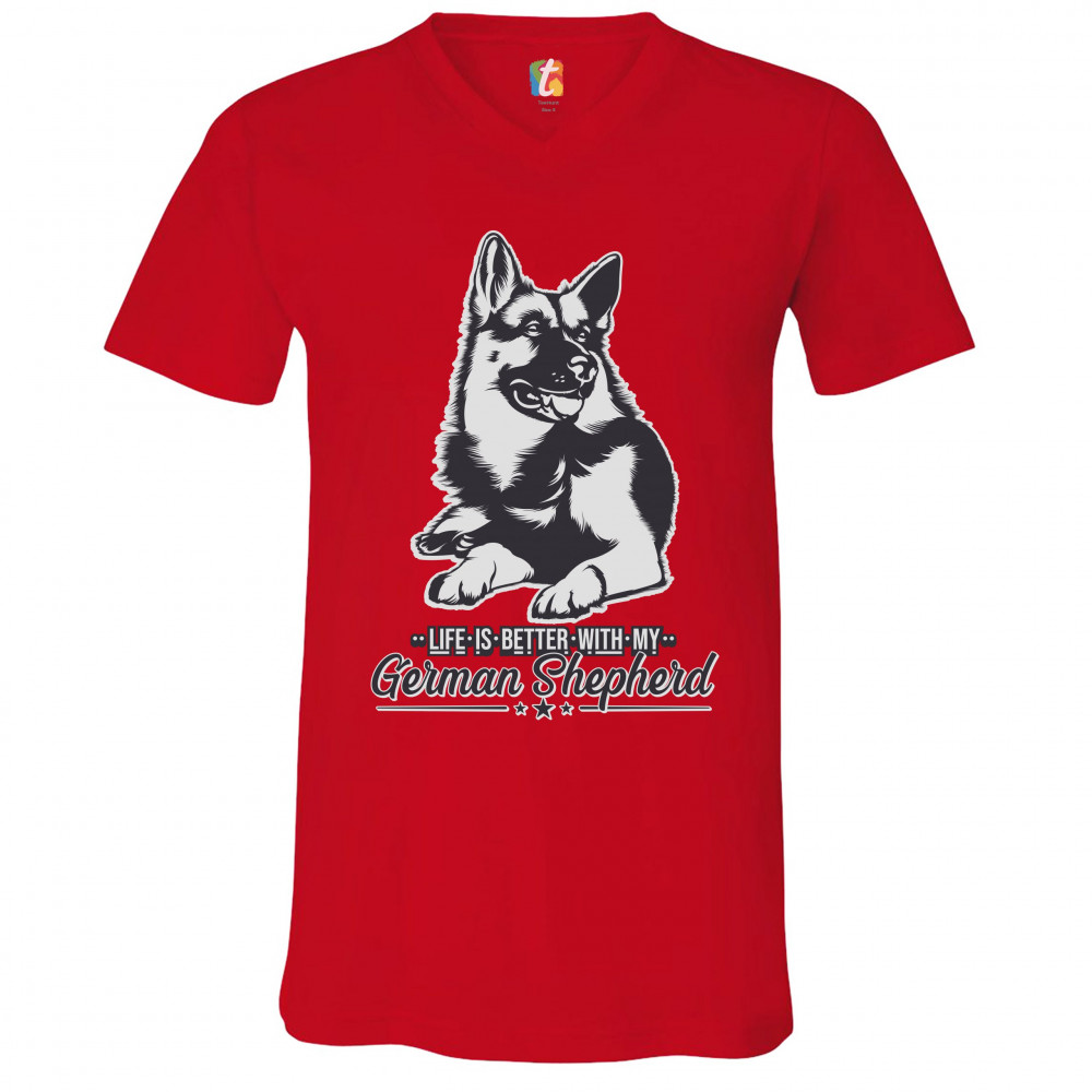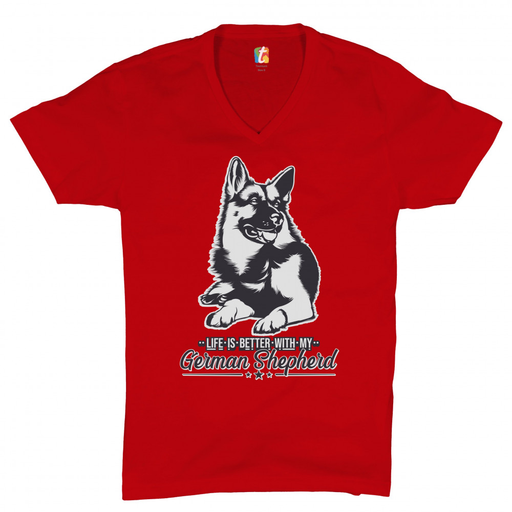 LIFE IS BETTER WITH MY GERMAN SHEPHERD v-neck t-shirt dog lover pet tee red