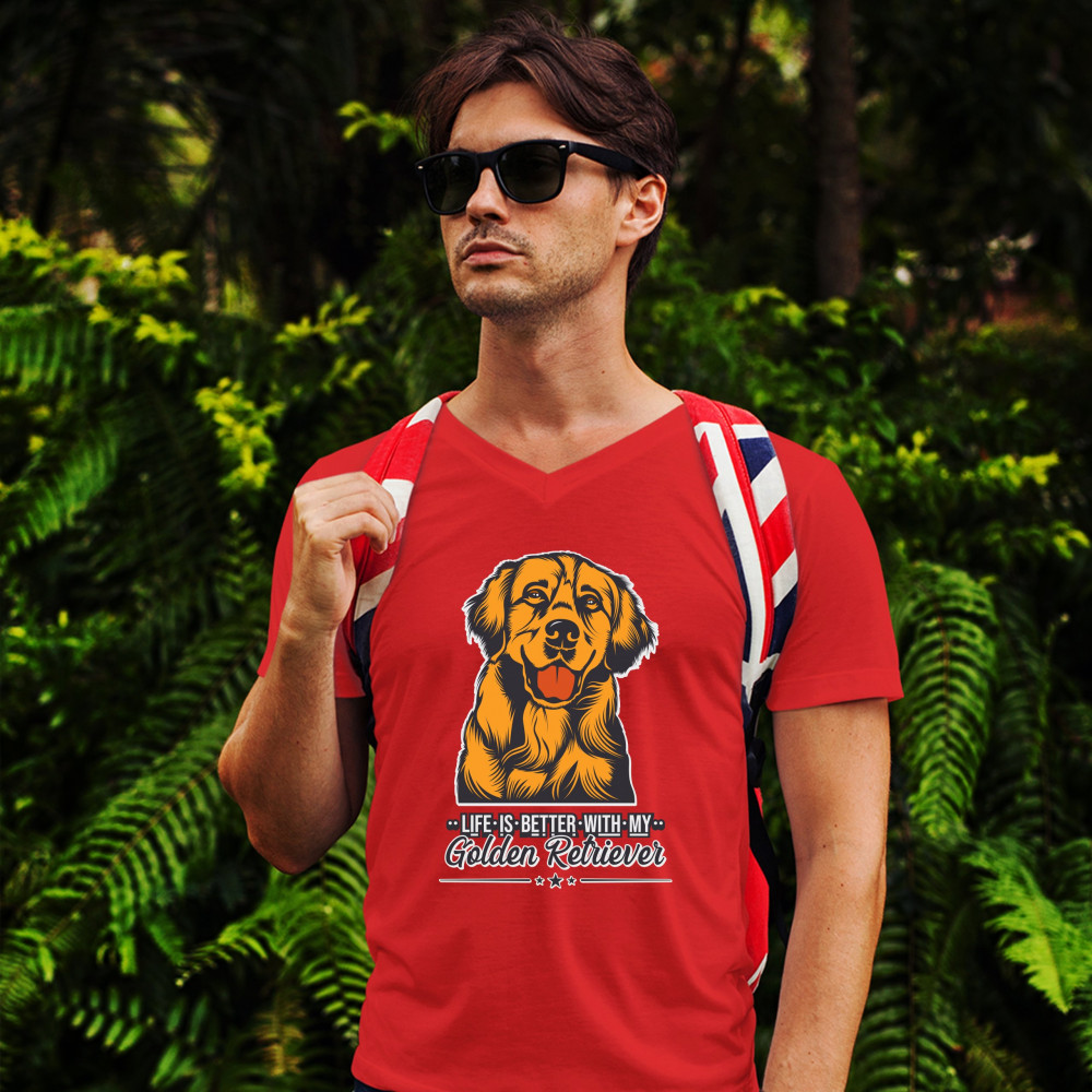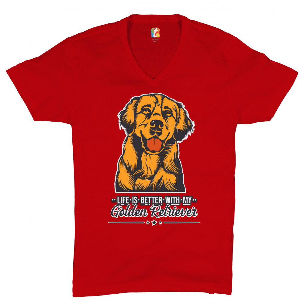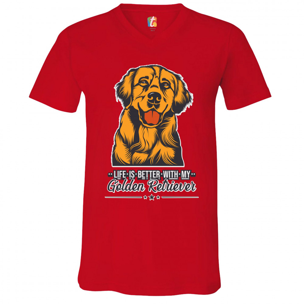 LIFE IS BETTER WITH MY GOLDEN RETRIEVER v-neck t-shirt puppy dog owner tee red