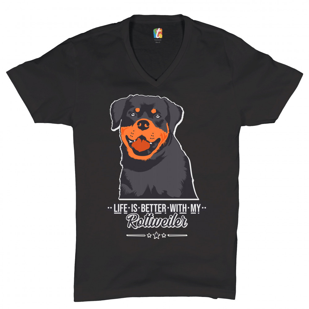 LIFE IS BETTER WITH MY ROTTWEILER v-neck t-shirt rottie pet dog lover tee black