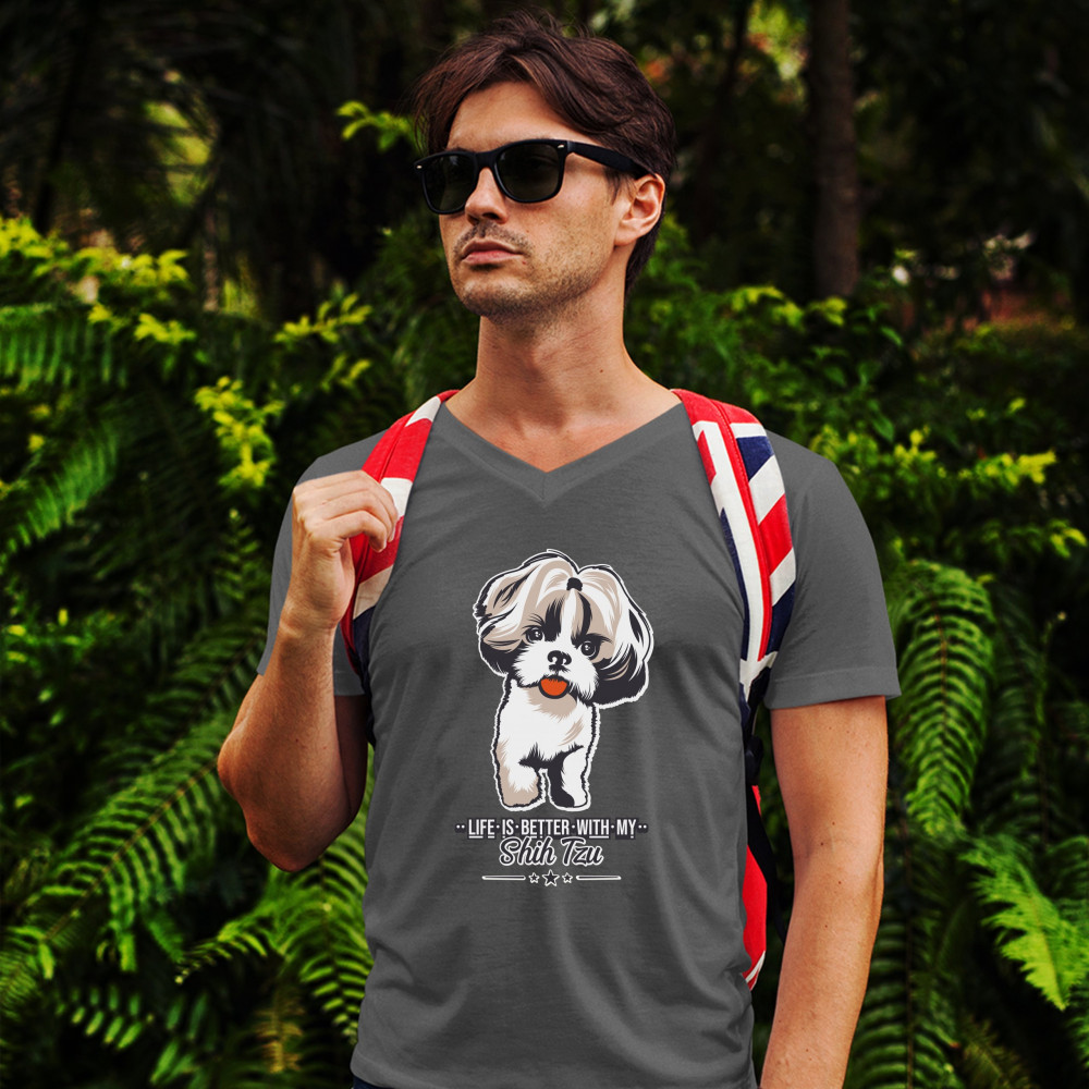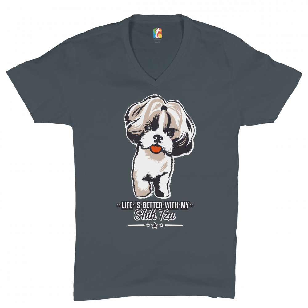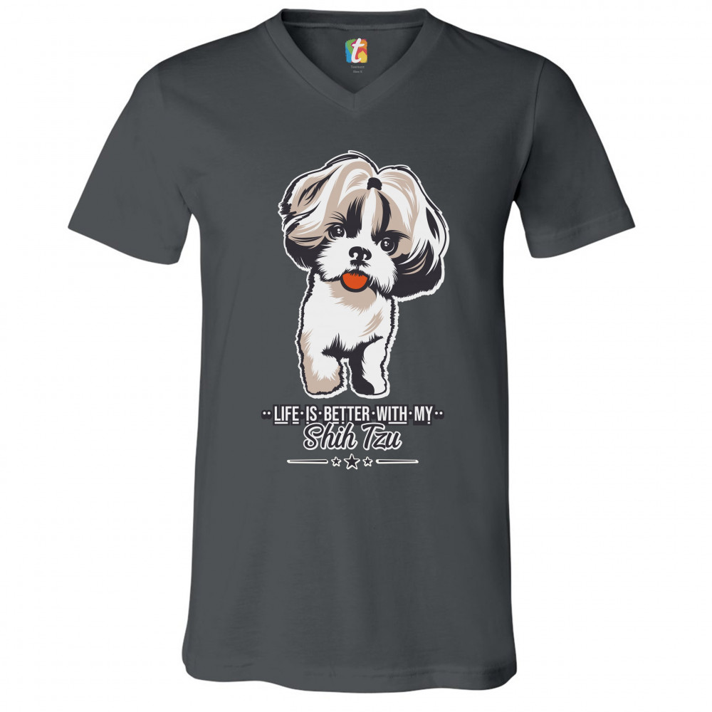 LIFE IS BETTER WITH MY SHIH TZU v-neck t-shirt small dog lover toy dog tee charcoal