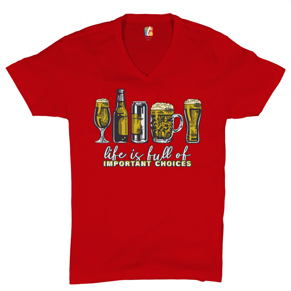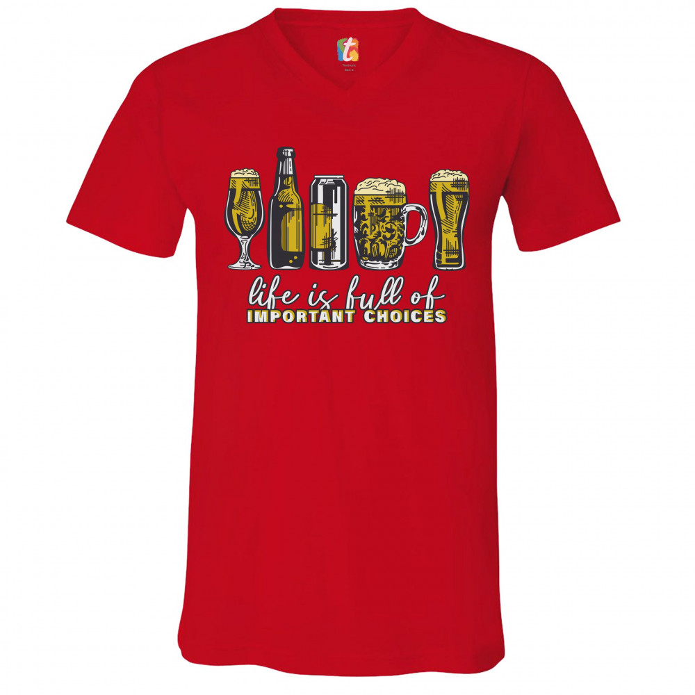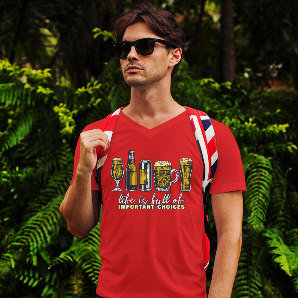 LIFE IS FULL OF IMPORTANT CHOICES v-neck t-shirt funny beer drinking ipa tee red
