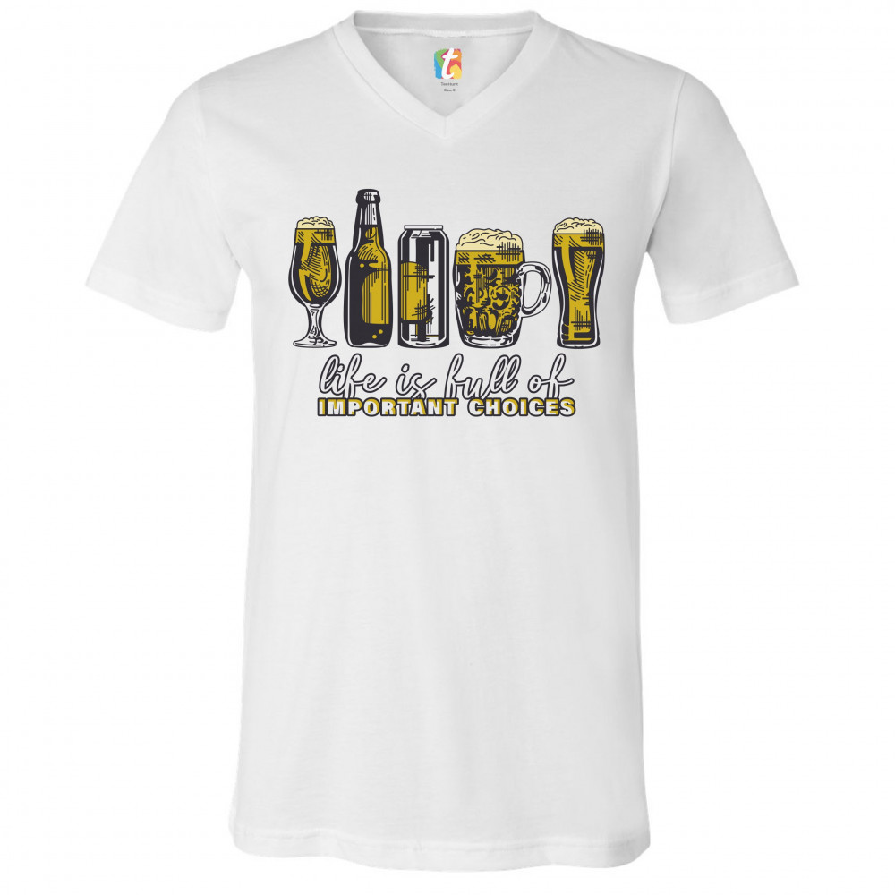 LIFE IS FULL OF IMPORTANT CHOICES v-neck t-shirt funny beer drinking ipa tee white