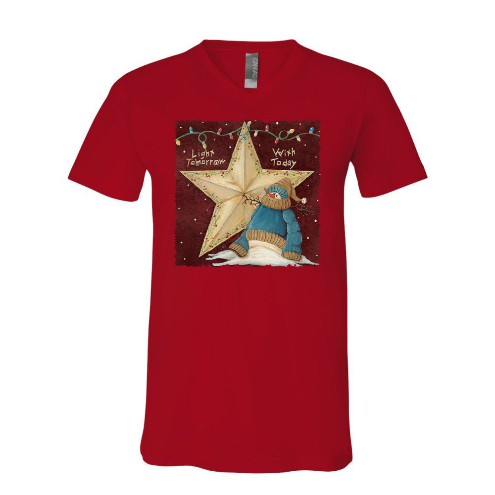 LIGHT TOMORROW WITH TODAY v-neck t-shirt cute christmas snowman holiday tee red