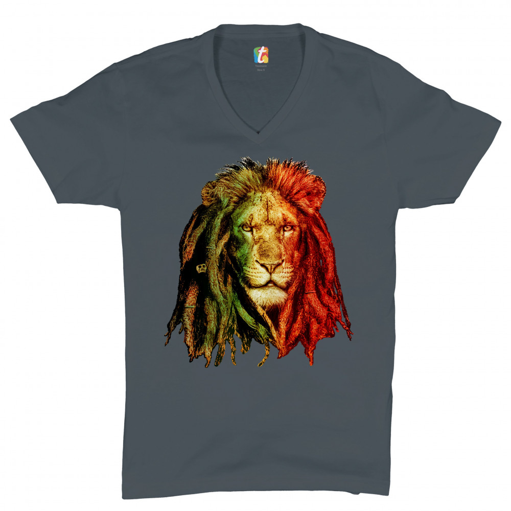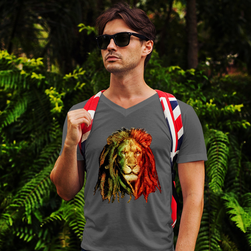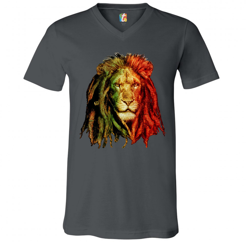 LION WITH DREADLOCKS v-neck t-shirt rastafari jah jamaica marijuana 420 tee charcoal