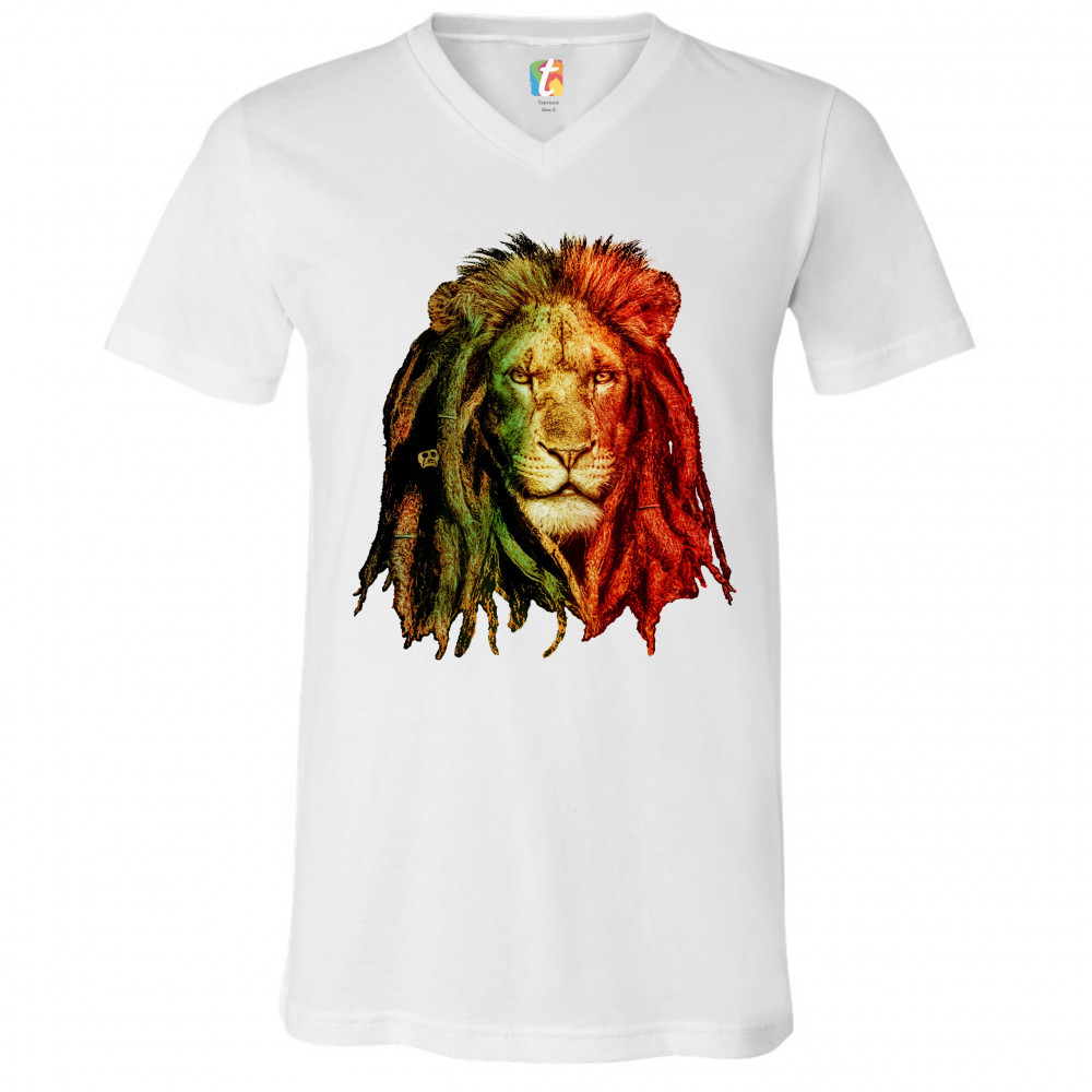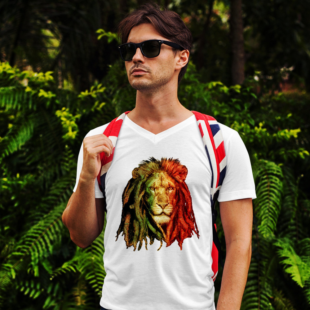 LION WITH DREADLOCKS v-neck t-shirt rastafari jah jamaica marijuana 420 tee white
