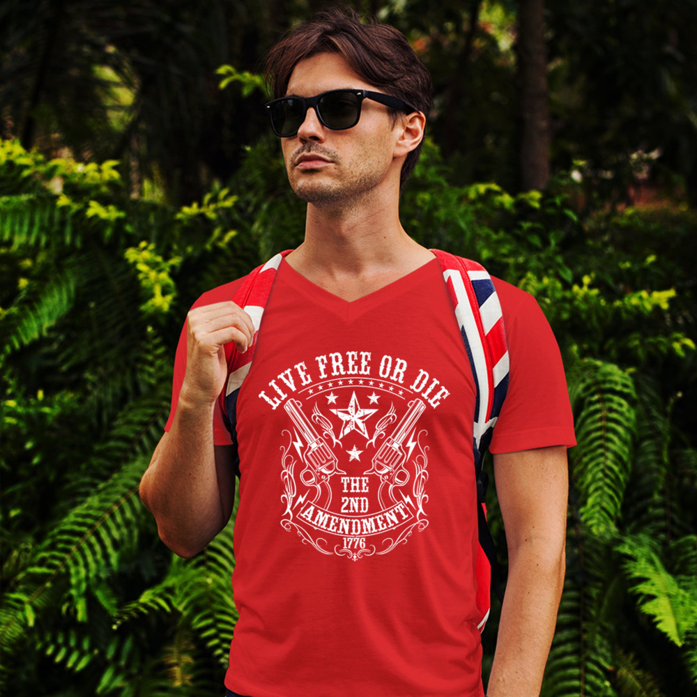 LIVE FREE OR DIE v-neck t-shirt the 2nd amendment 1776 patriotic gun owner tee red
