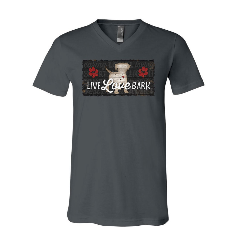 LIVE LOVE BARK v-neck t-shirt cute dog puppy doggie paw wiggle pet woof tee charcoal