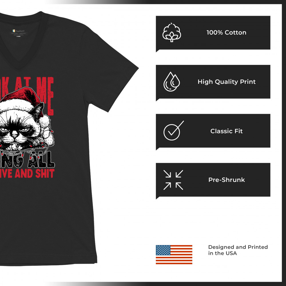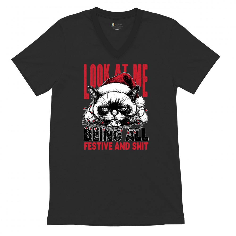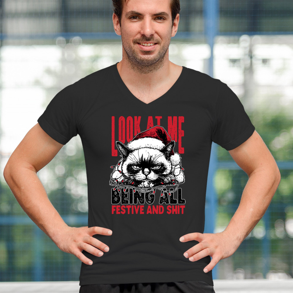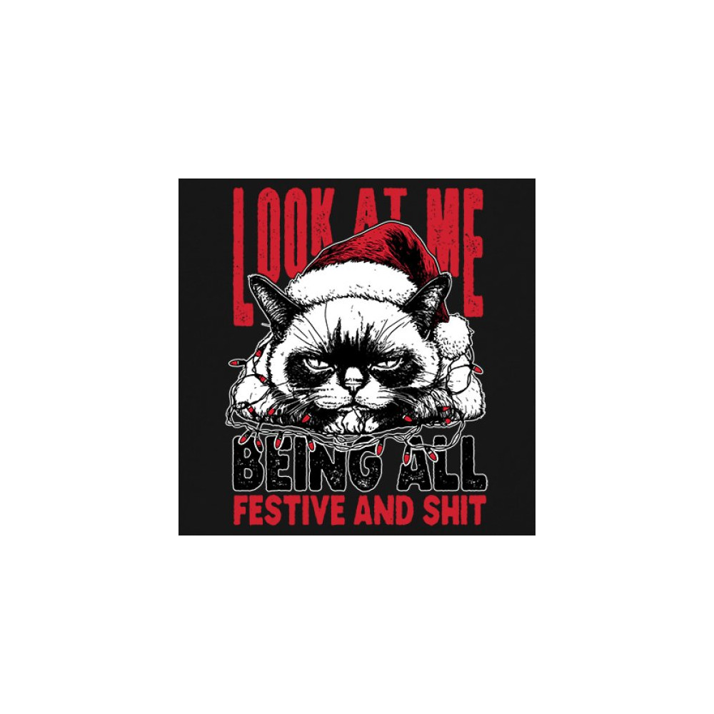 Grumpy Cat Christmas design with Santa hat, Christmas tree humor, Let It Snow vibes, Jingle Bells style, and sarcastic Merry Xmas spirit.