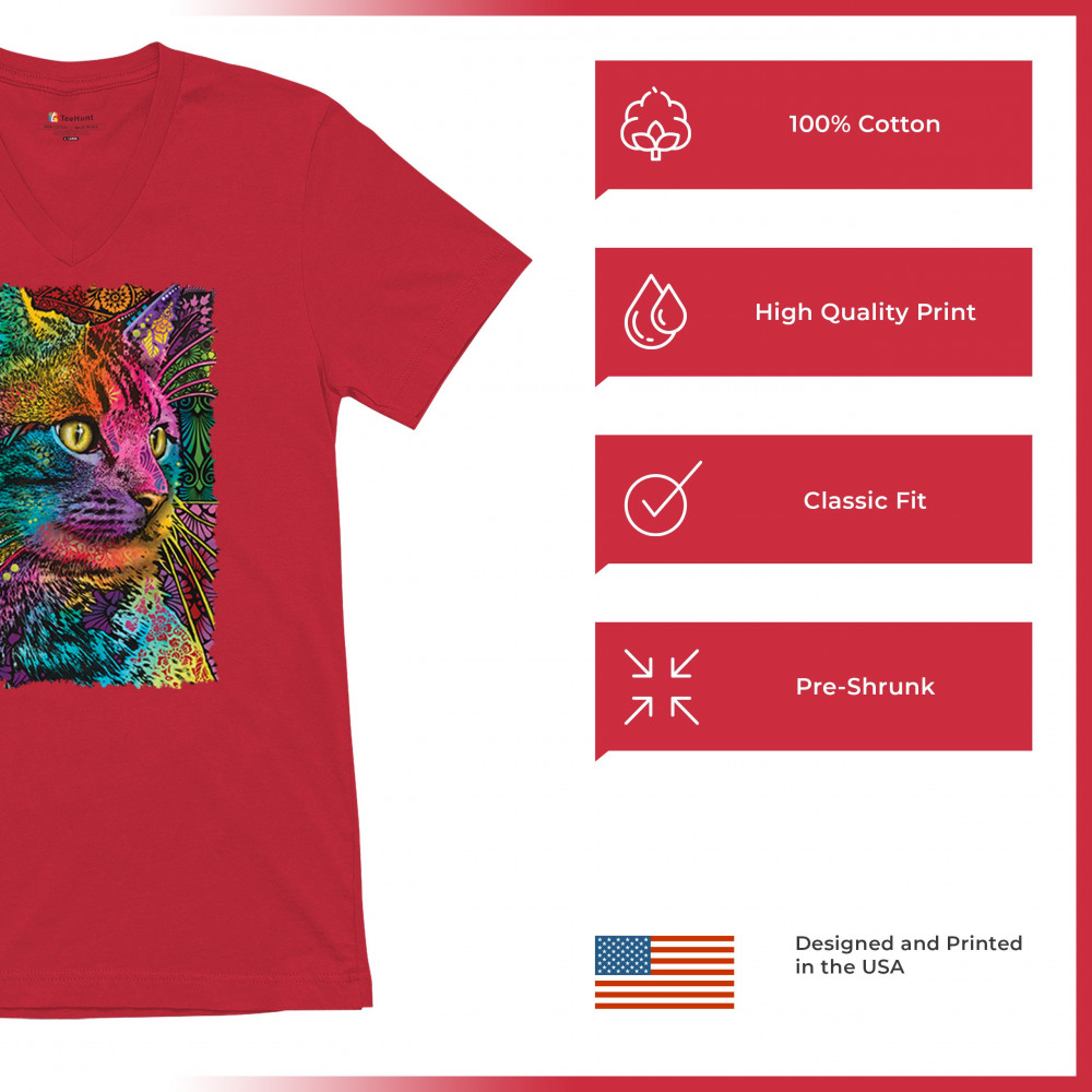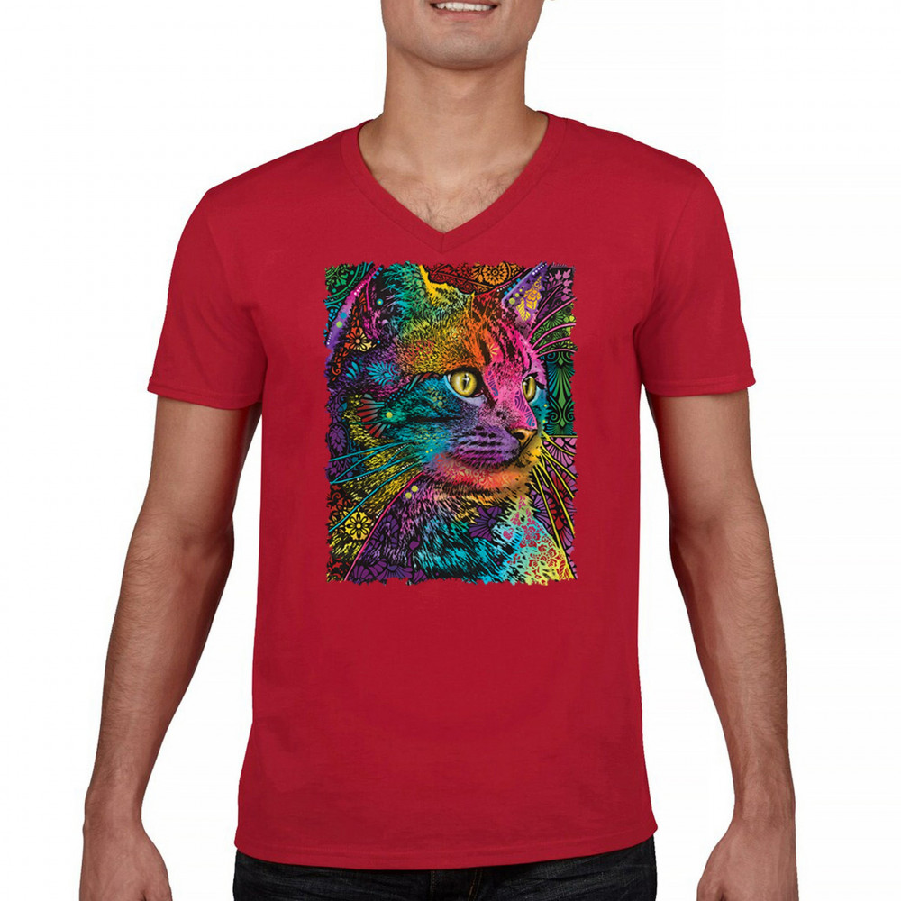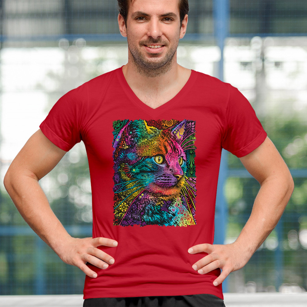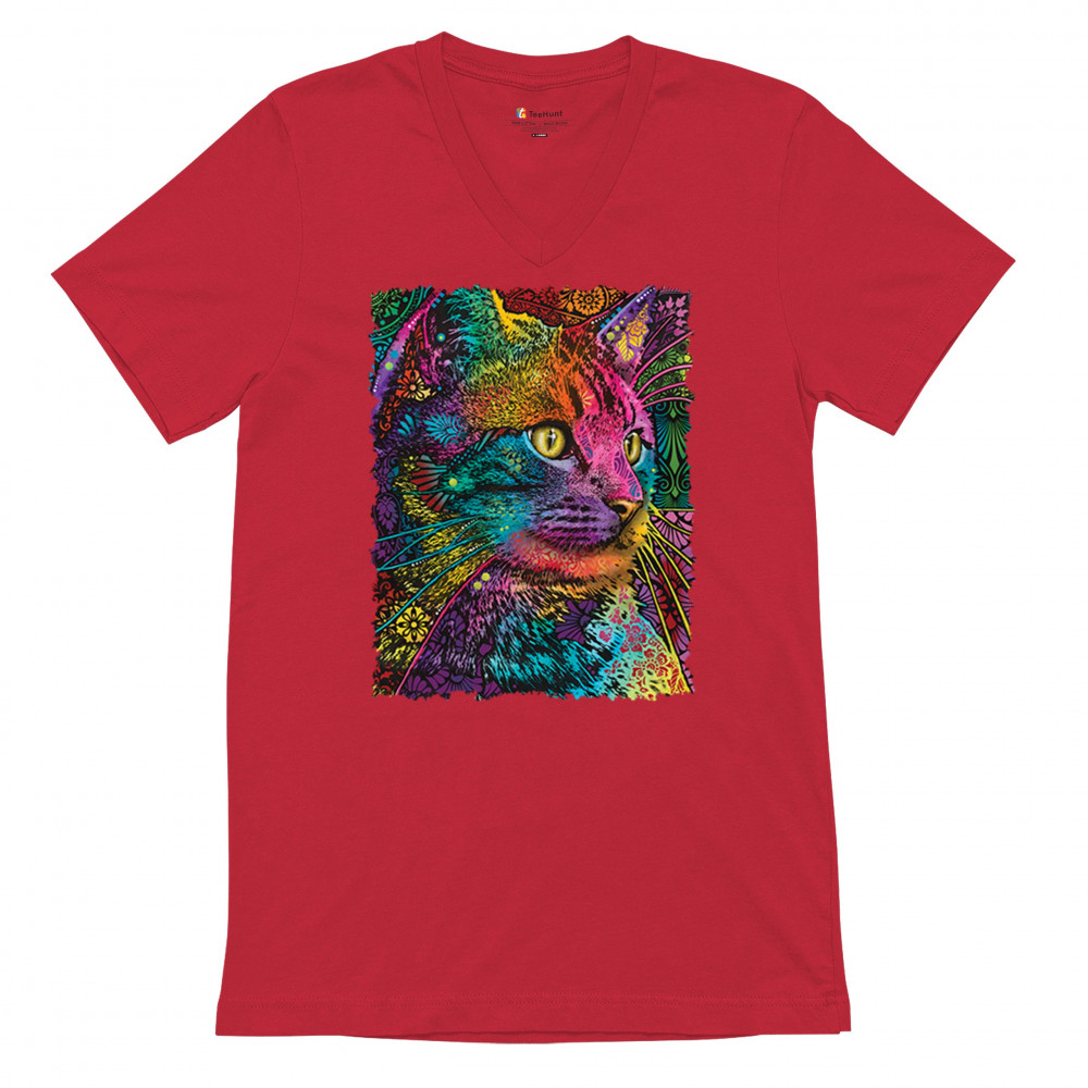 LOVABLE CAT v-neck t-shirt dean russo colorful felis catus pattern art tee red