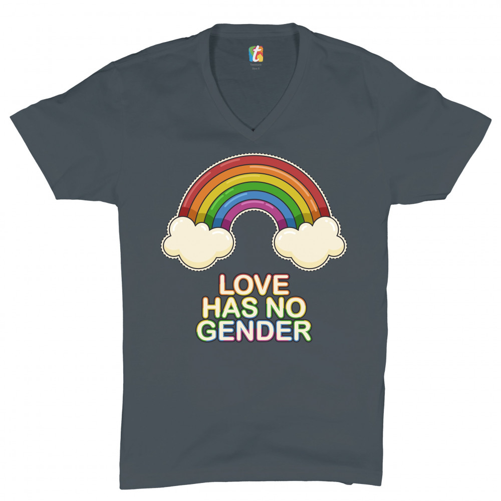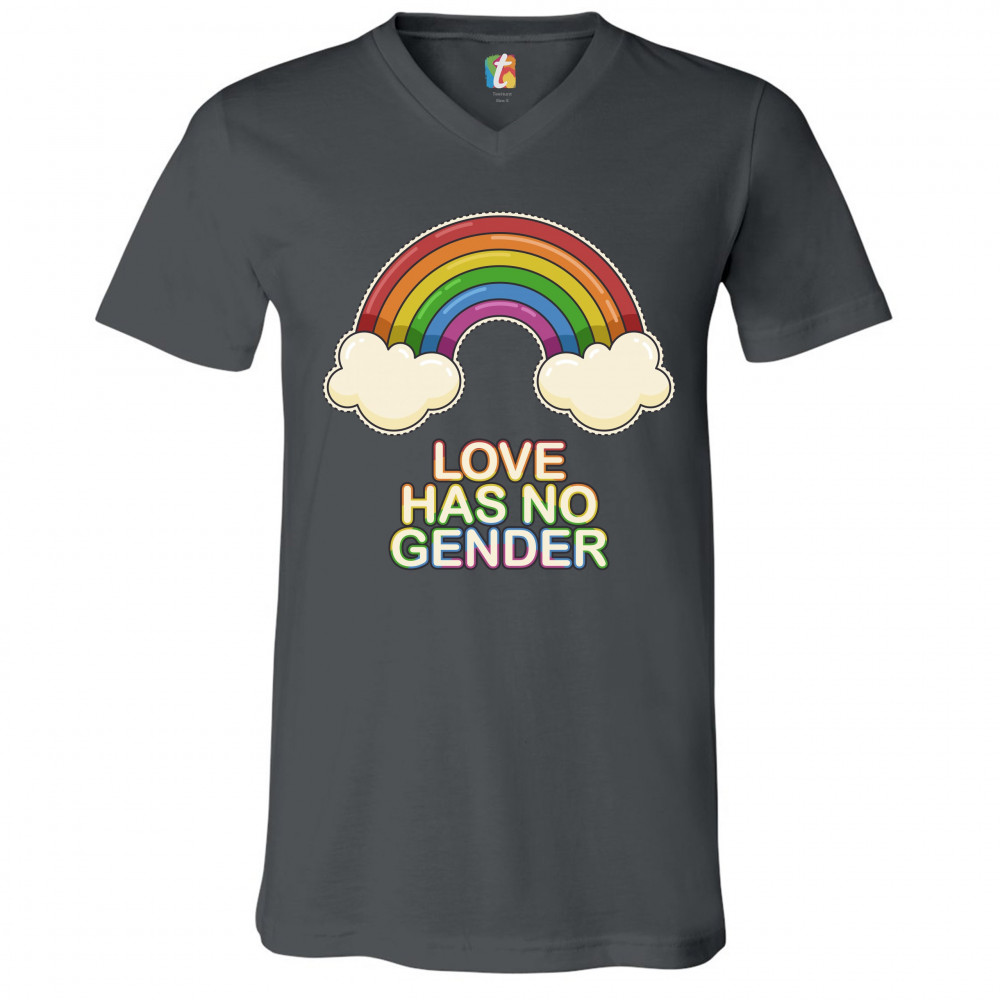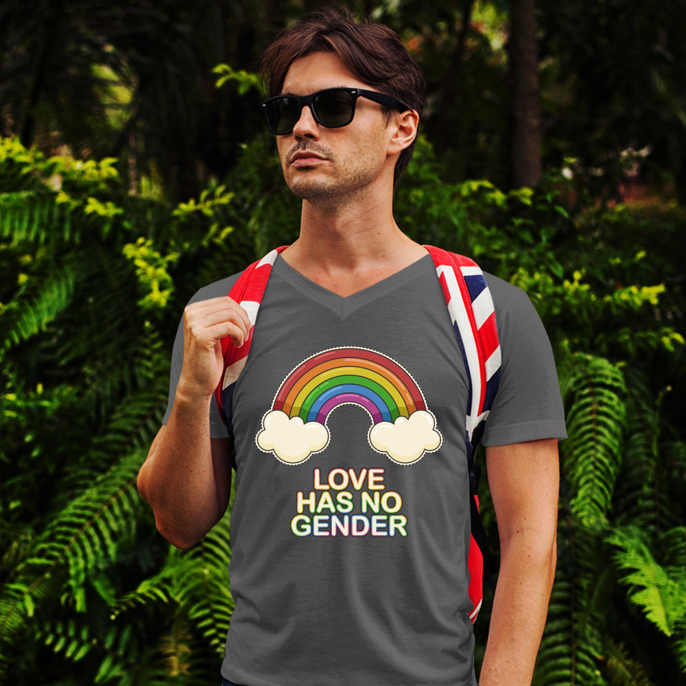 LOVE HAS NO GENDER v-neck t-shirt gay pride queer rainbow love is love tee charcoal
