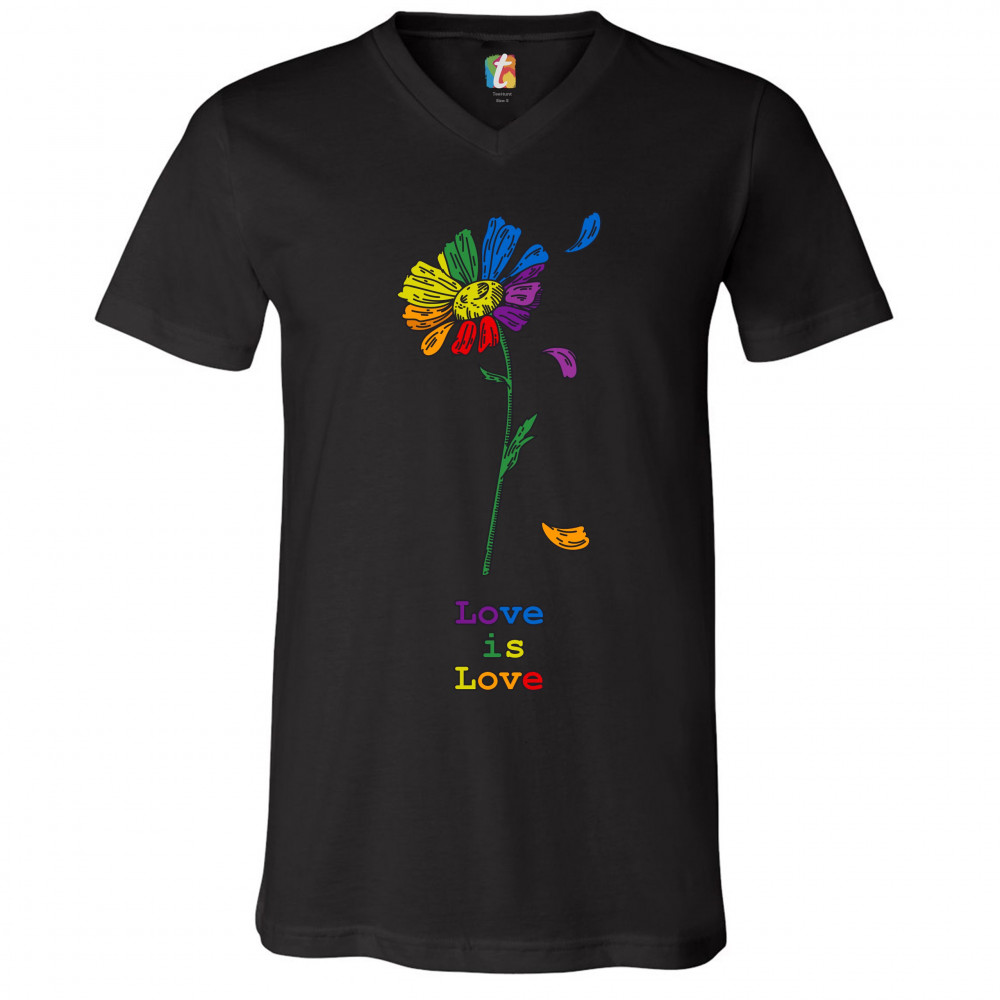 LOVE IS LOVE v-neck t-shirt rainbow flower lgbt acceptance gay pride tee black