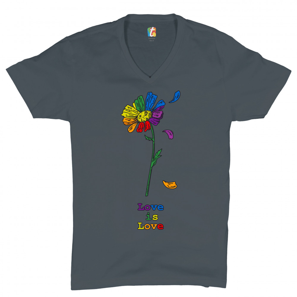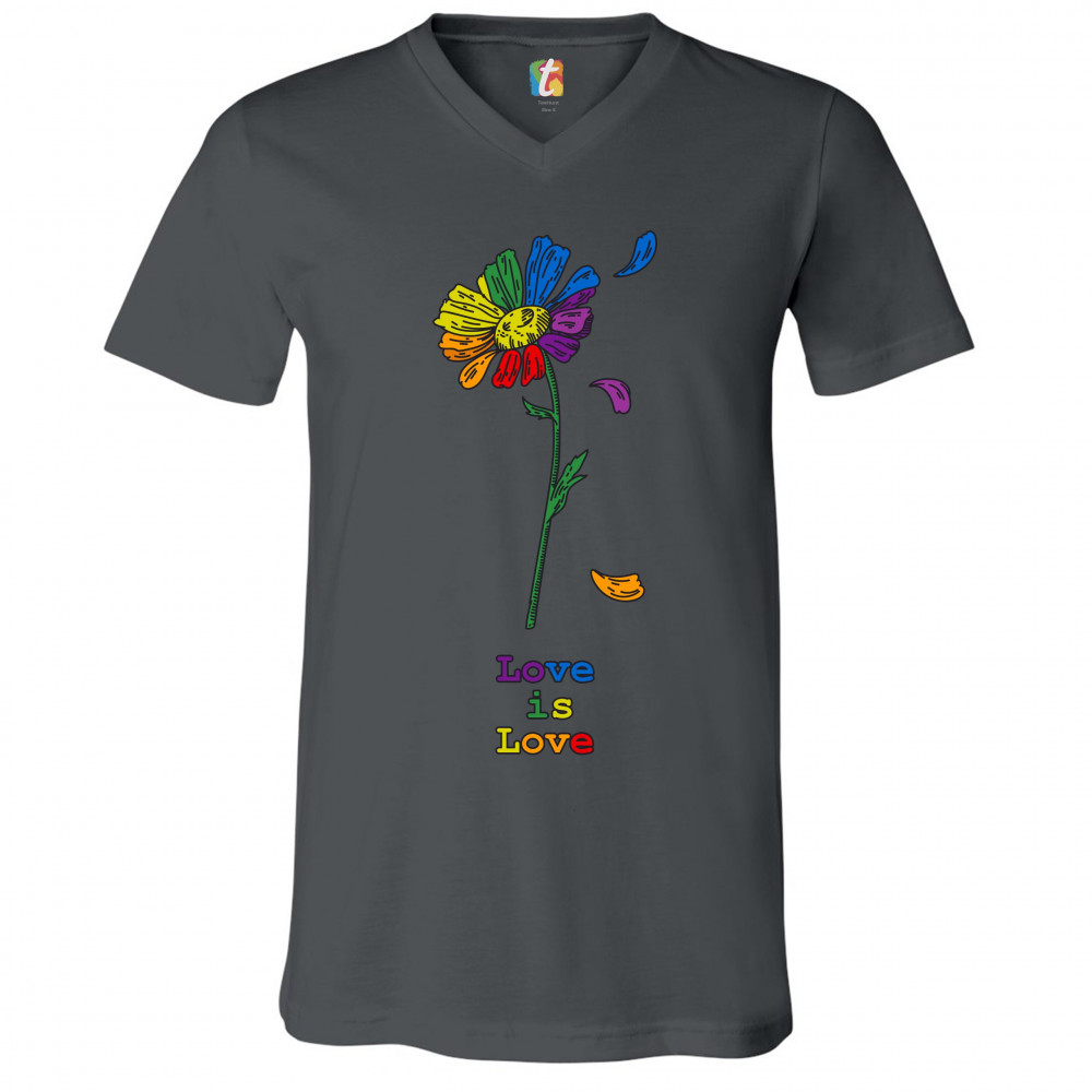 LOVE IS LOVE v-neck t-shirt rainbow flower lgbt acceptance gay pride tee charcoal