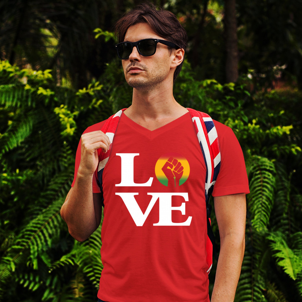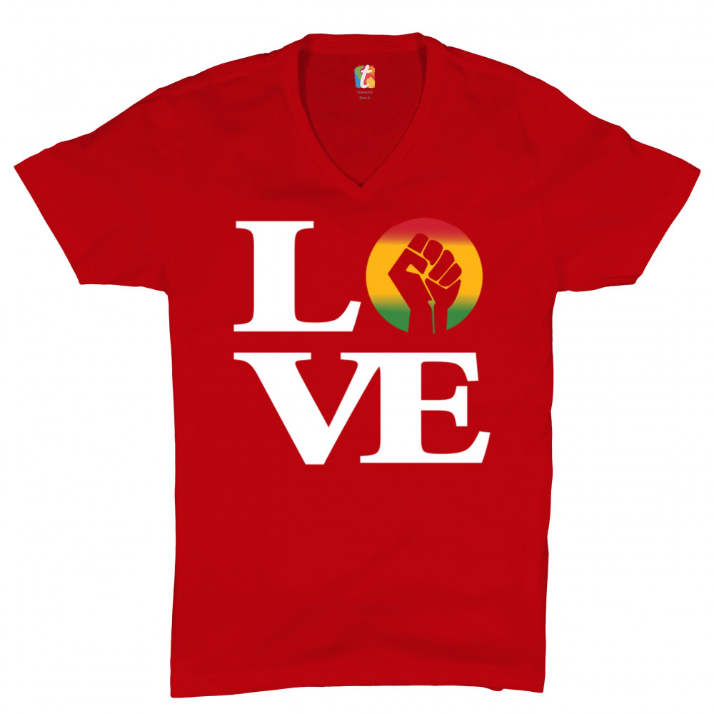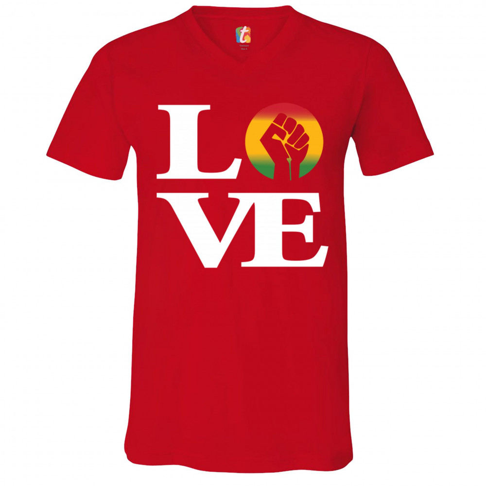 LOVE POWER FIST v-neck t-shirt black lives matter african american tee red