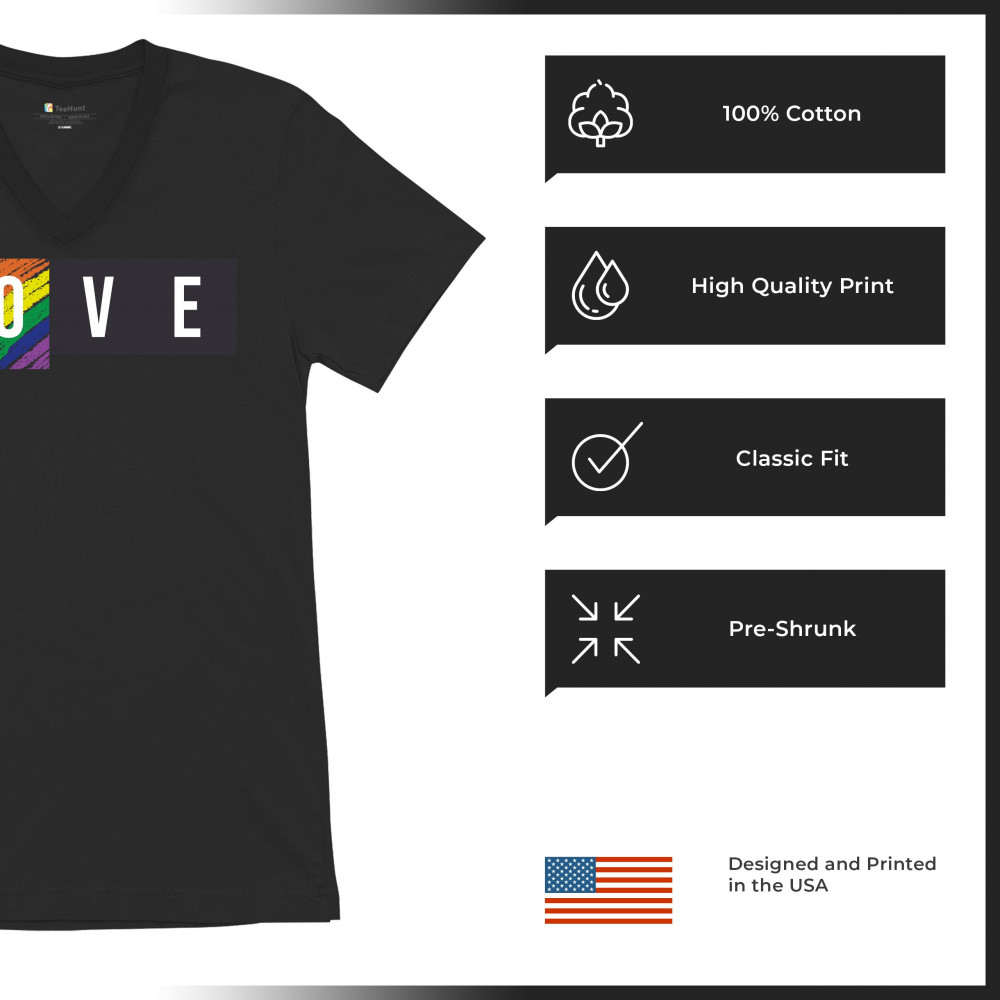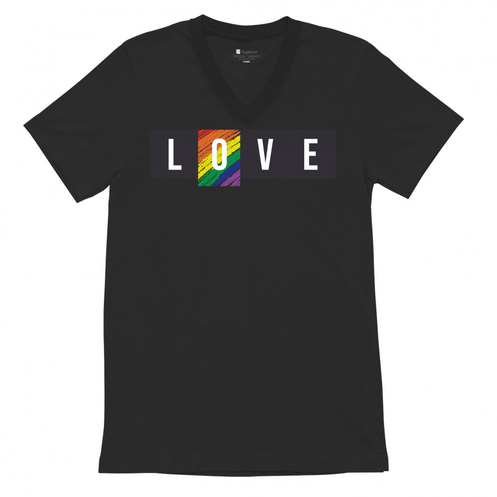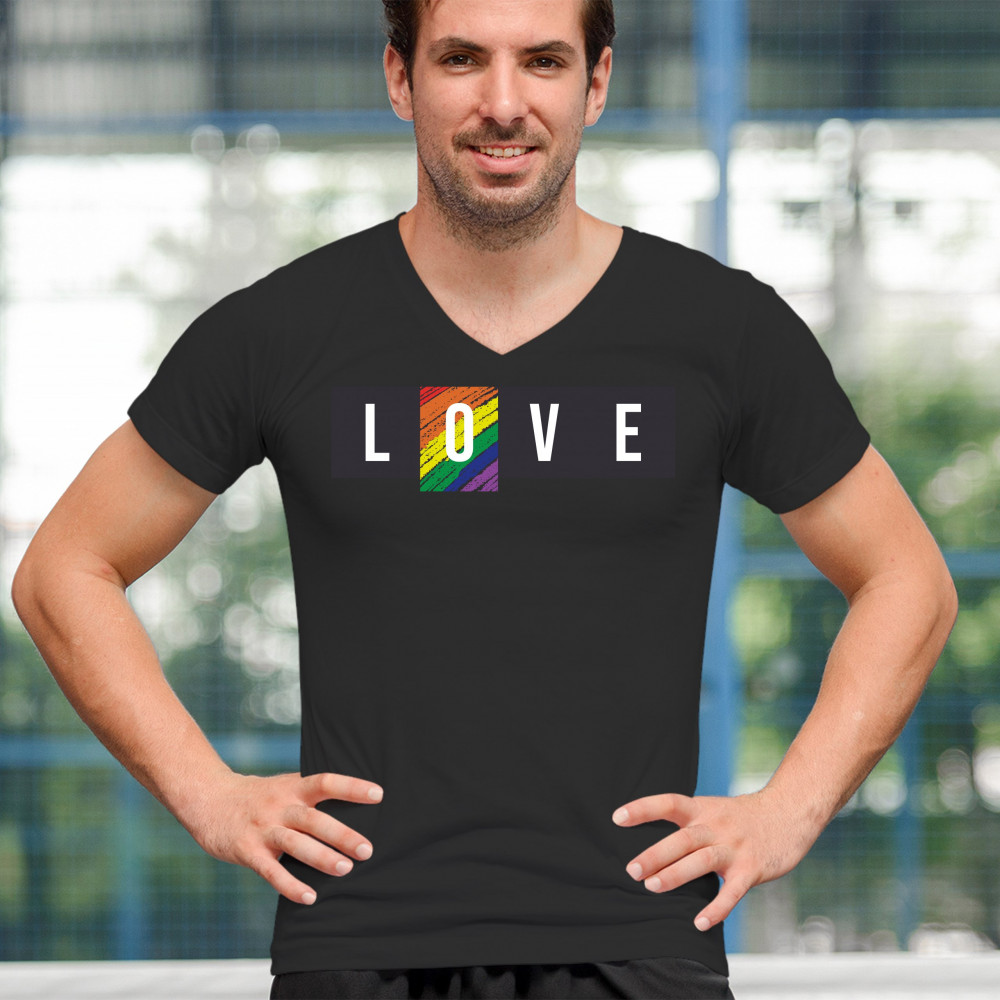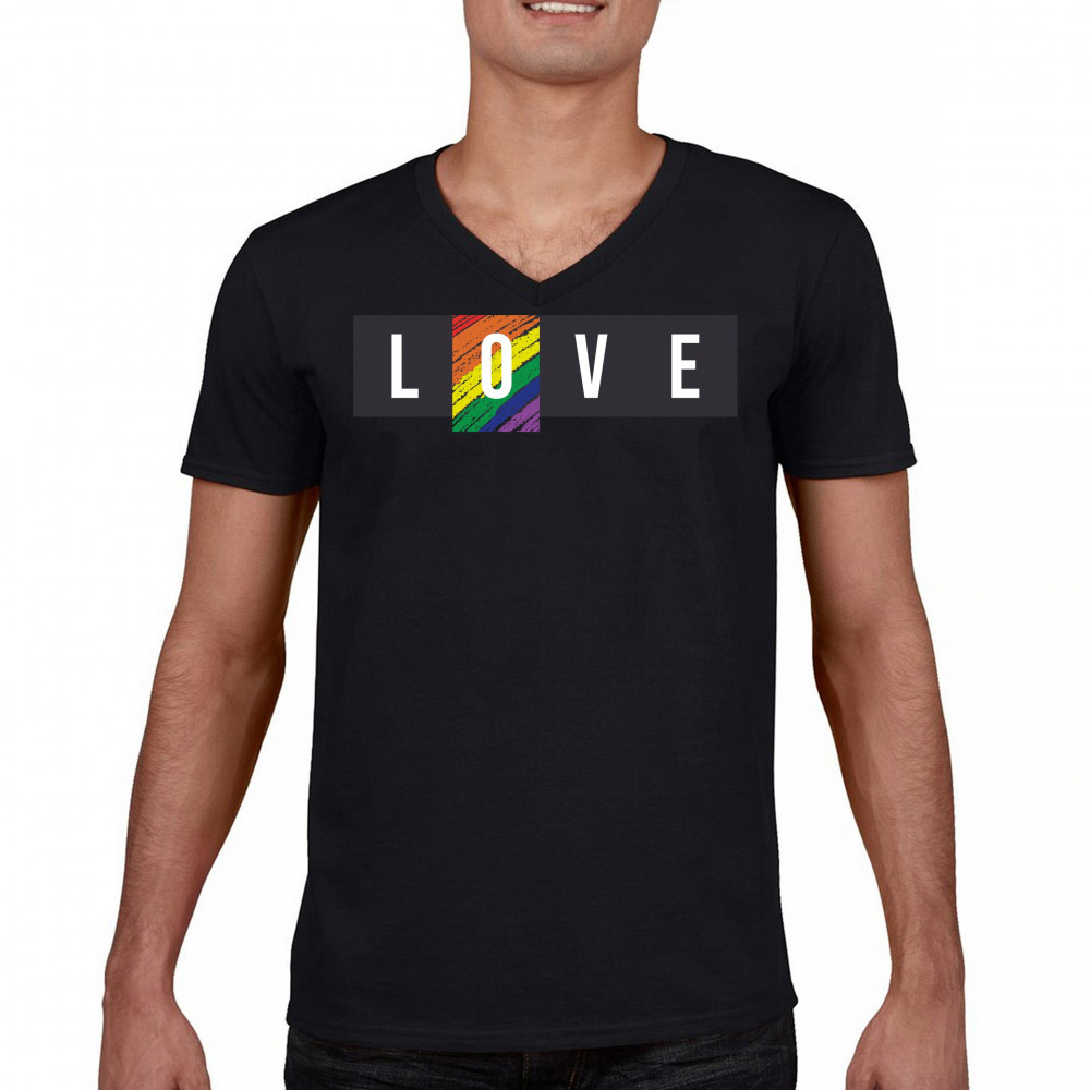 LOVE v-neck t-shirt gay pride rainbow lgbtq tolerance equality tee black