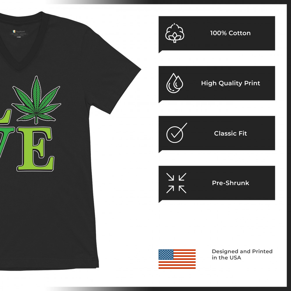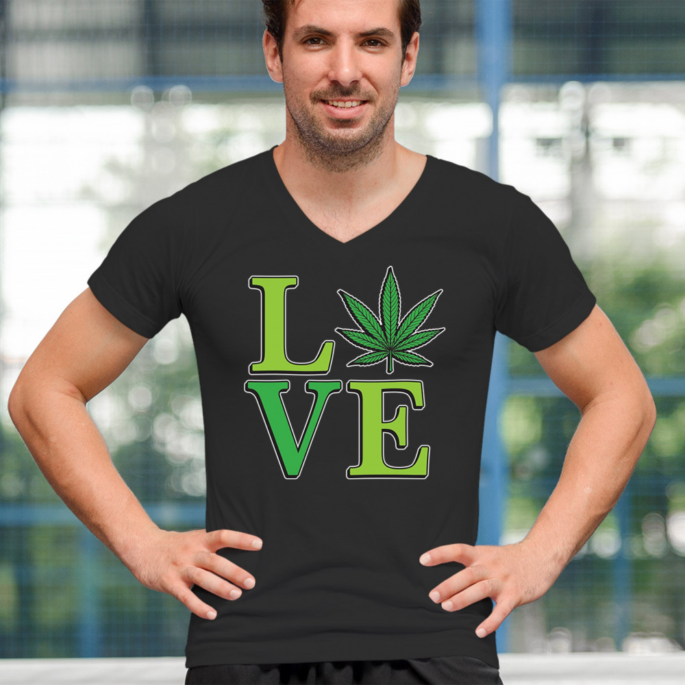 LOVE design with a bold weed leaf. Perfect for 420 fans, stoners, cannabis lifestyle wear, green pride, and marijuana lovers.