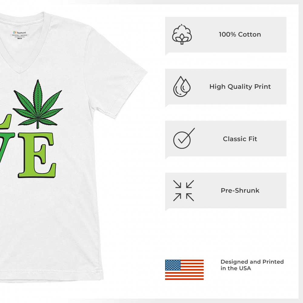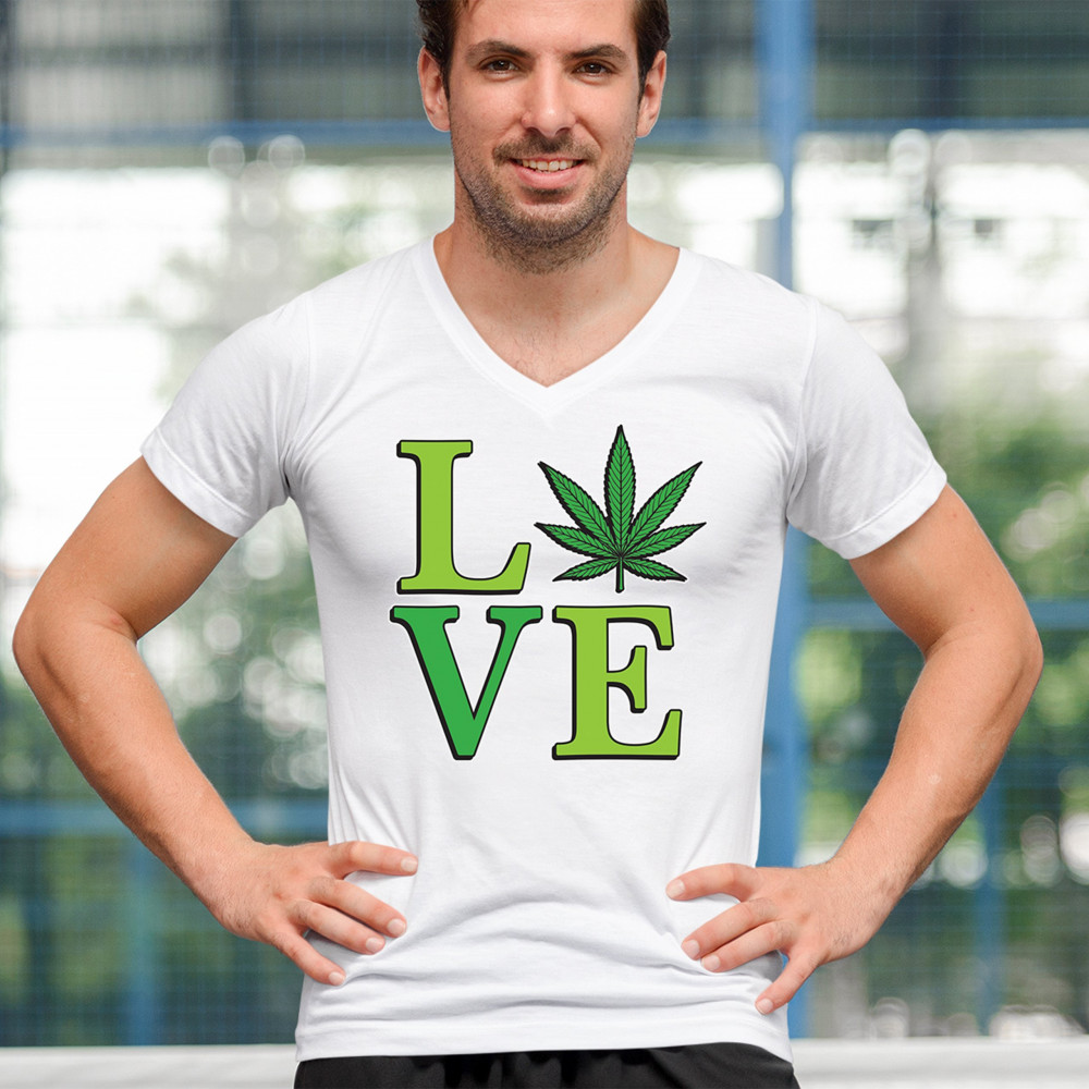 LOVE design with a bold weed leaf. Perfect for 420 fans, stoners, cannabis lifestyle wear, green pride, and marijuana lovers.