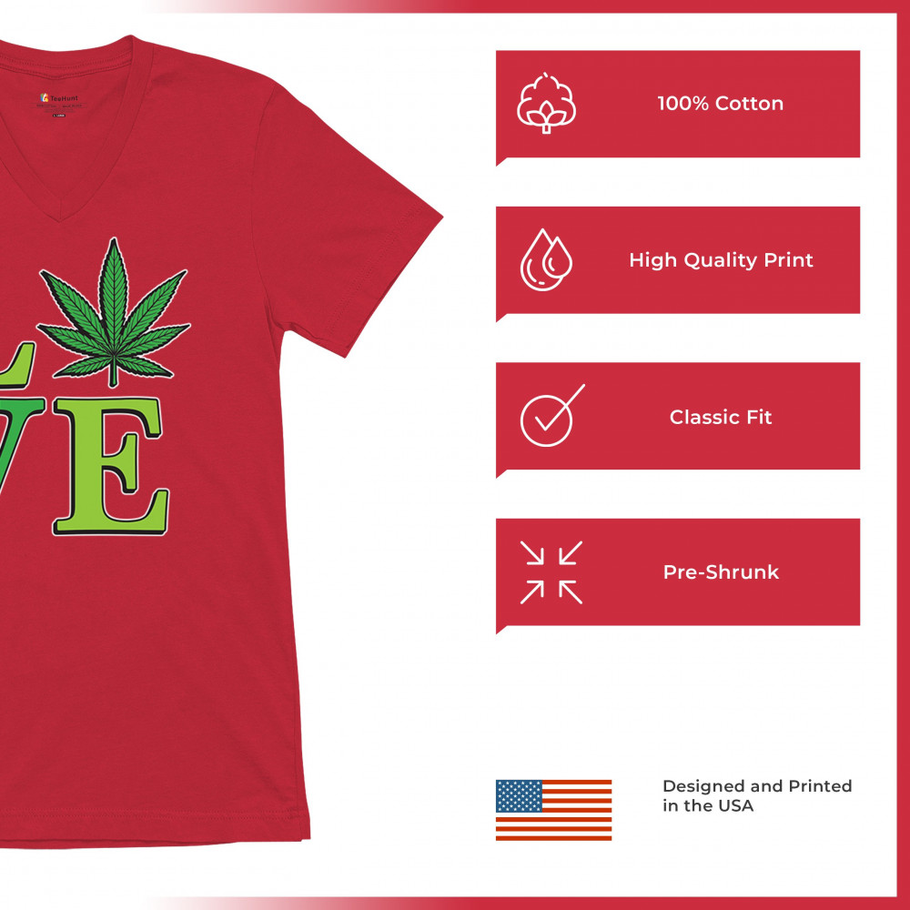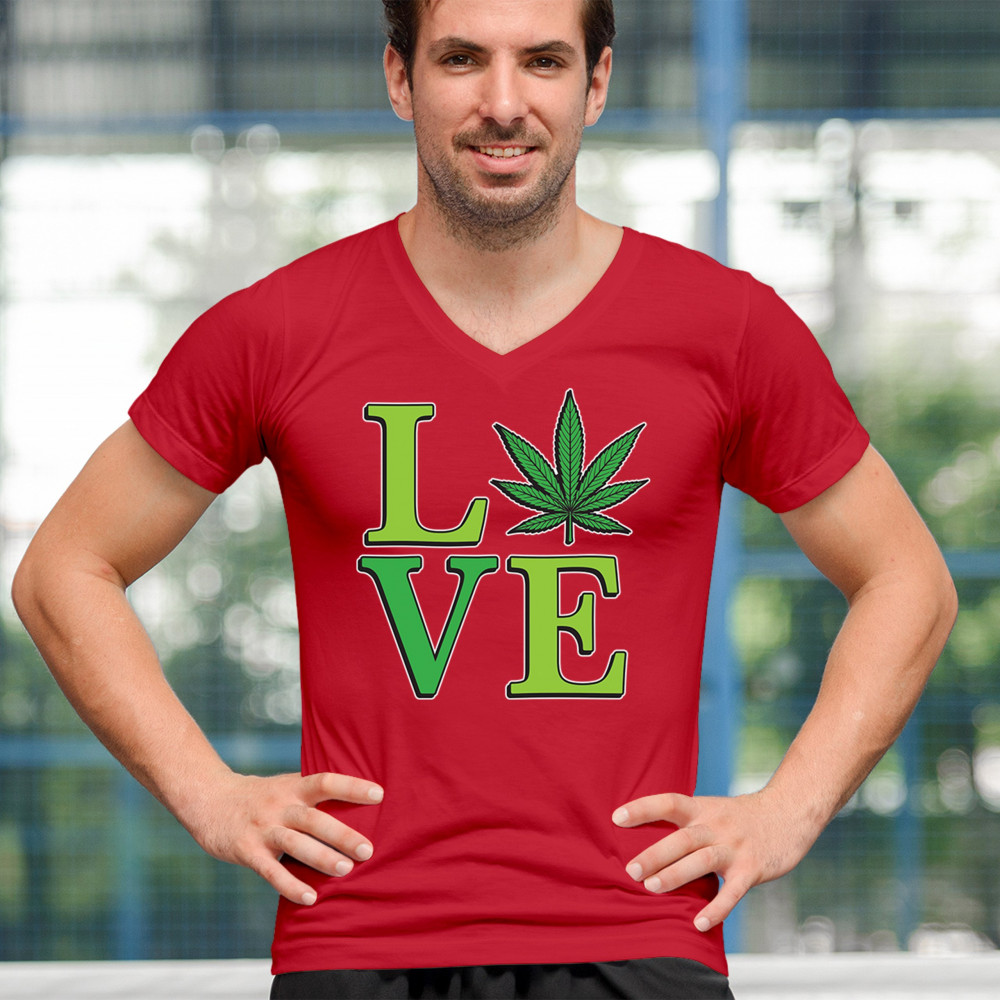 LOVE design with a bold weed leaf. Perfect for 420 fans, stoners, cannabis lifestyle wear, green pride, and marijuana lovers.