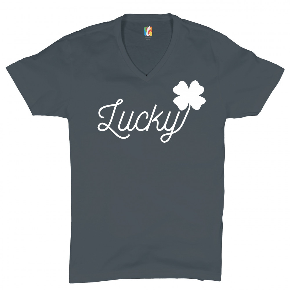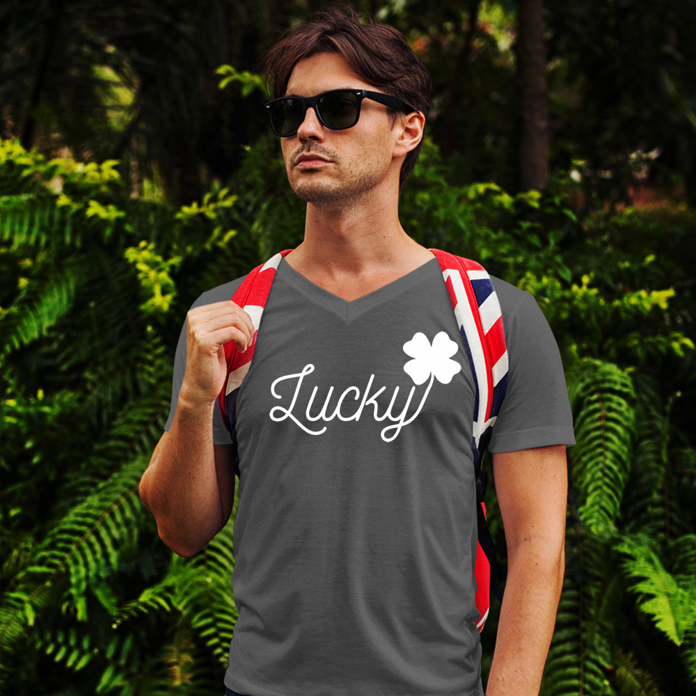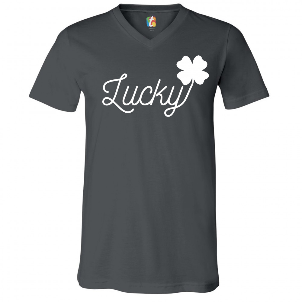LUCKY SHAMROCK v-neck t-shirt st. patrick's day funny holiday tee charcoal