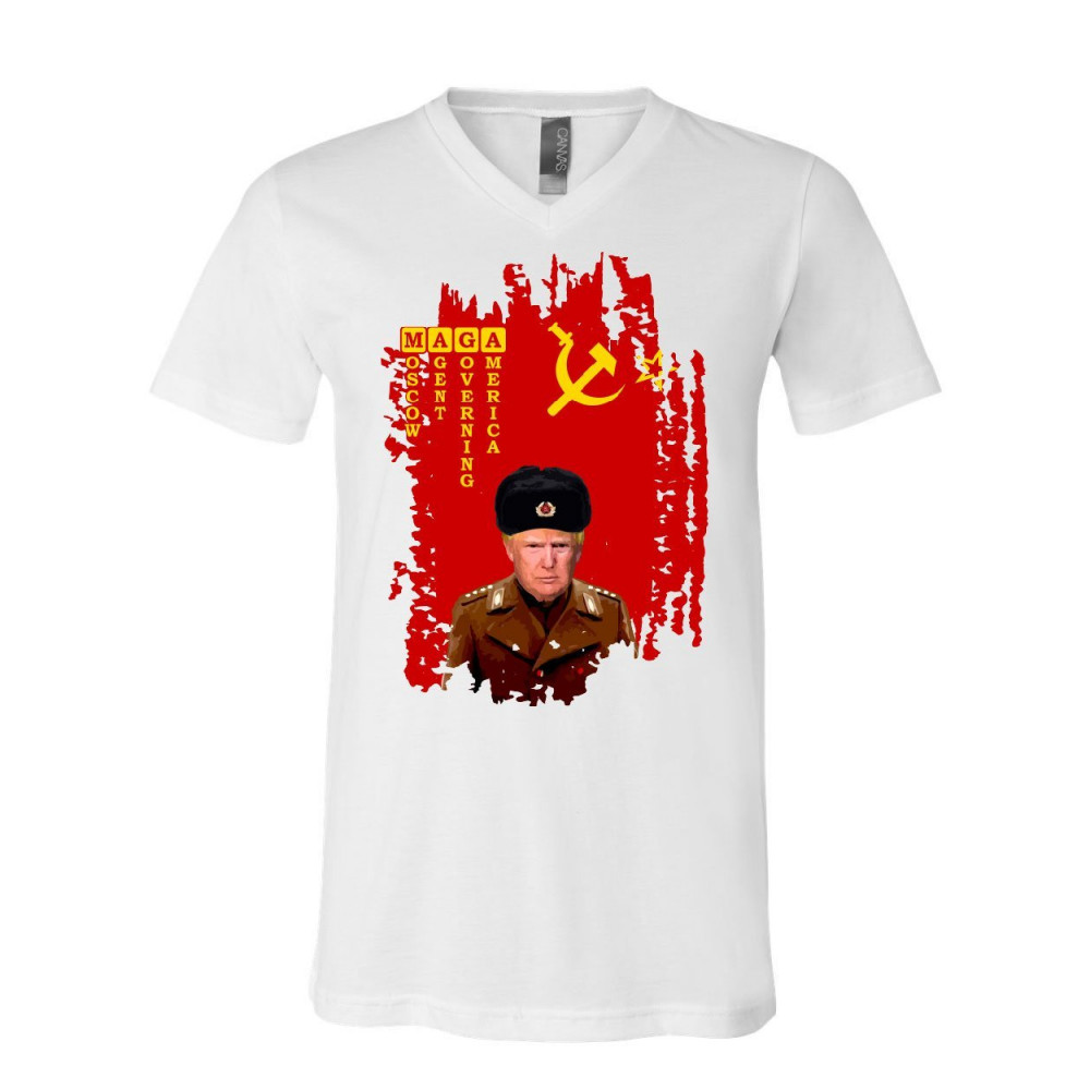 MAGA COMRADE TRUMP v-neck t-shirt funny soviet flag ussr russian agent tee white