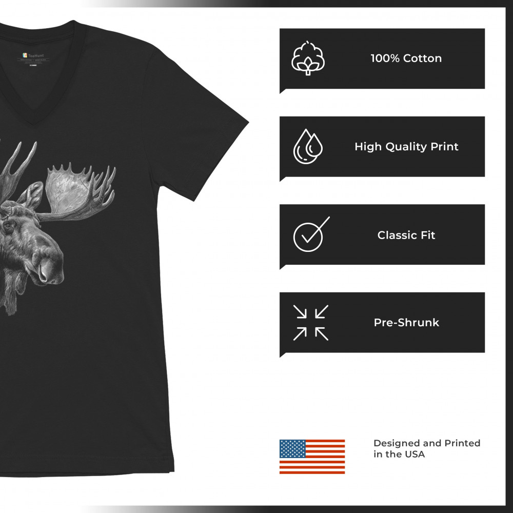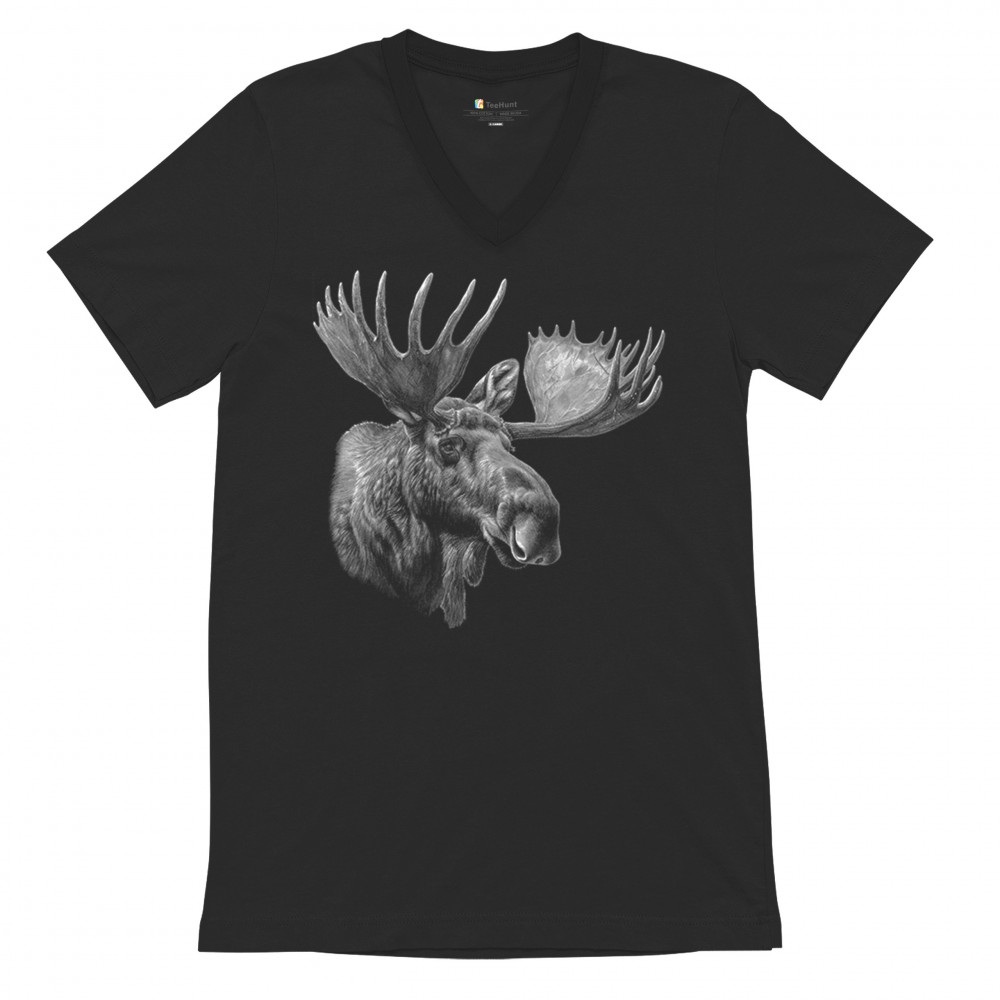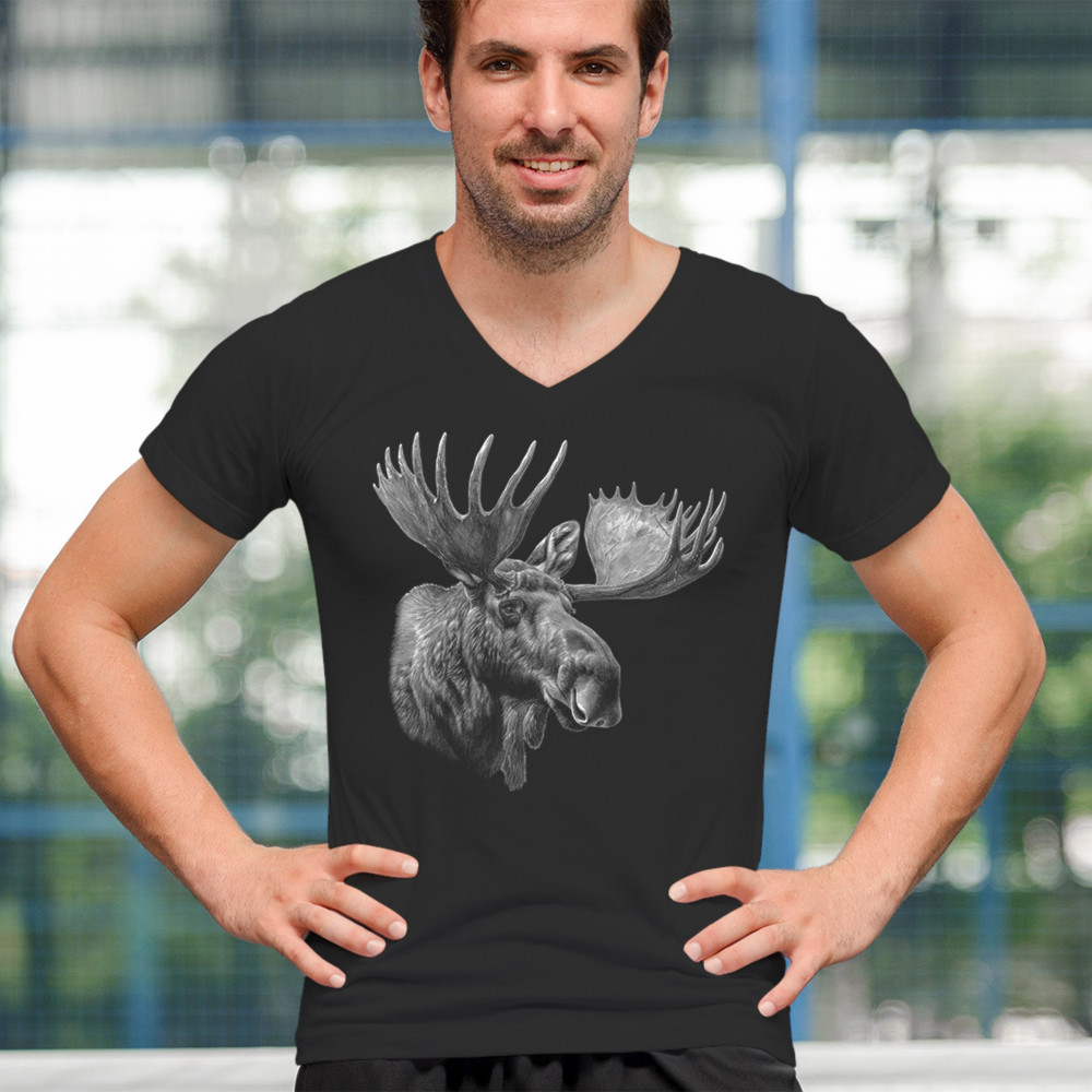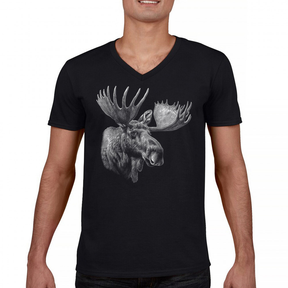 MAJESTIC MOOSE PORTRAIT v-neck t-shirt wildlife nature northwoods animal tee black