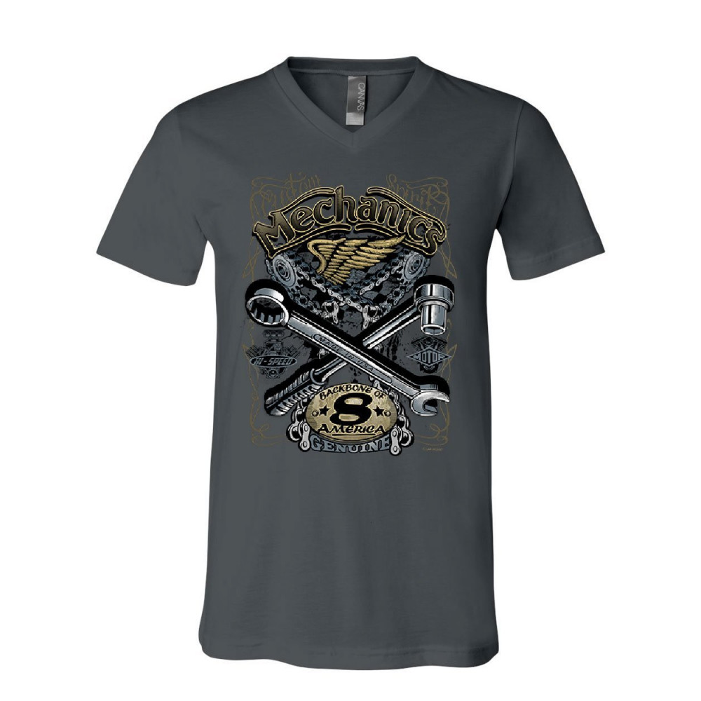 MECHANICS - BACKBONE OF AMERICA mechanics backbone of america v-neck t-shirt engine repair blue collar tee charcoal