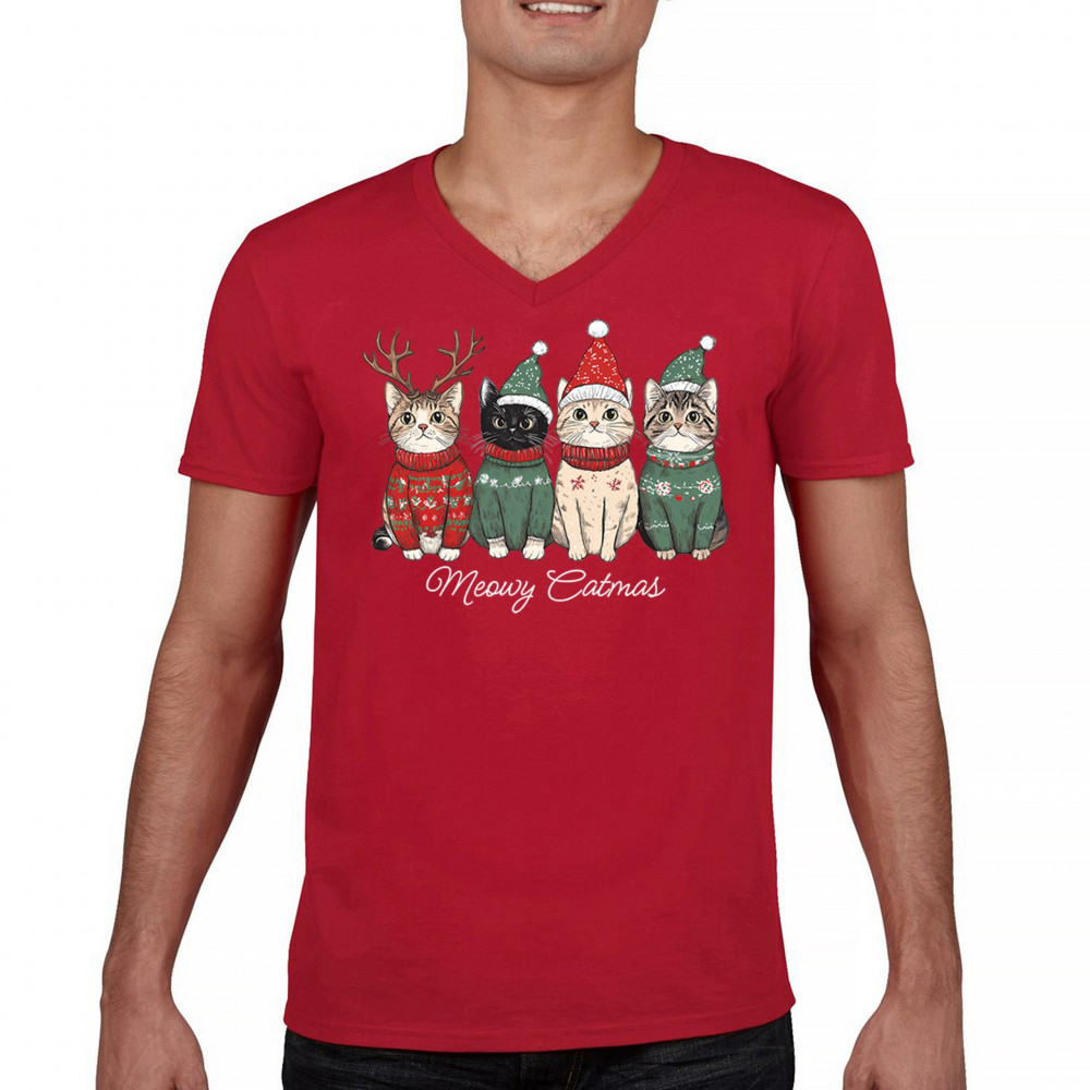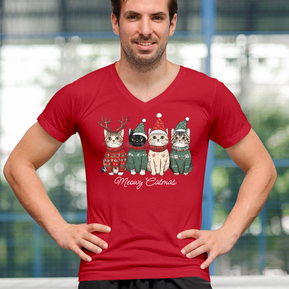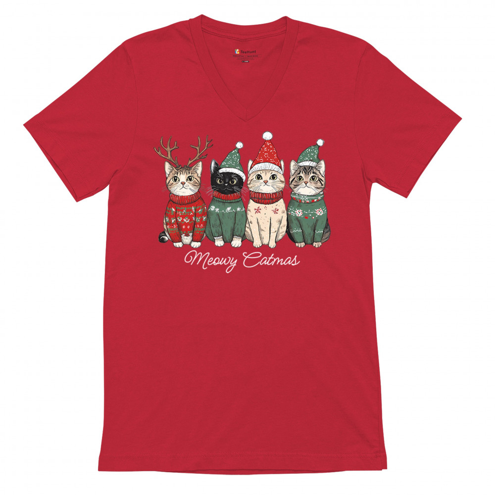 Cute Meowy Catmas design with festive kittens, perfect for cat lovers wanting a cozy holiday graphic and fun Christmas pet theme.
