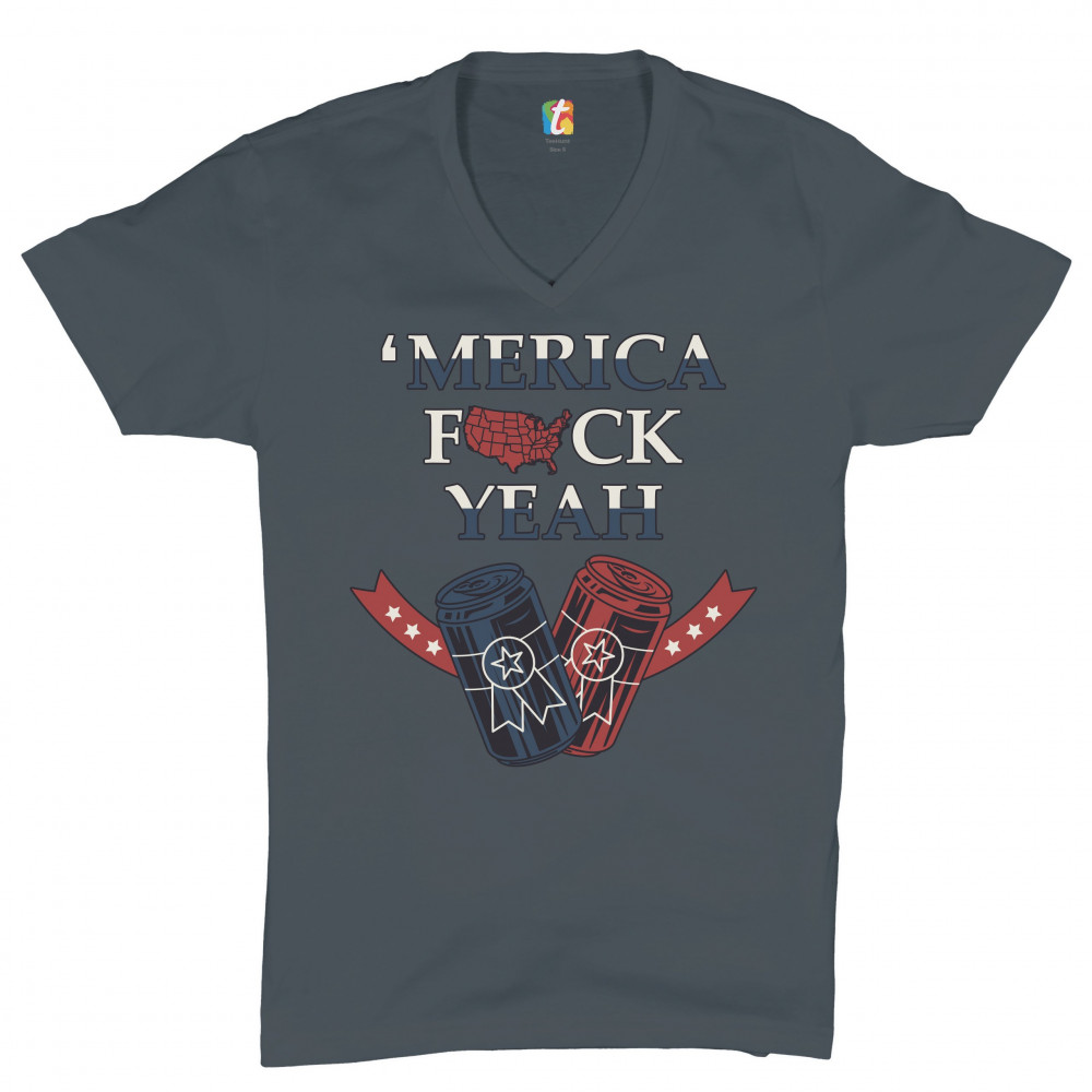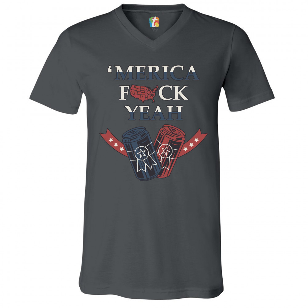 MERICA F*CK YEAH v-neck t-shirt patriotic american pride drinking beer tee charcoal