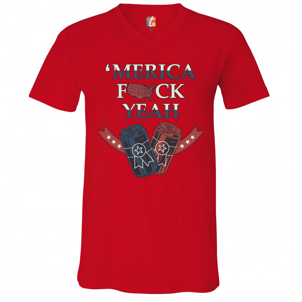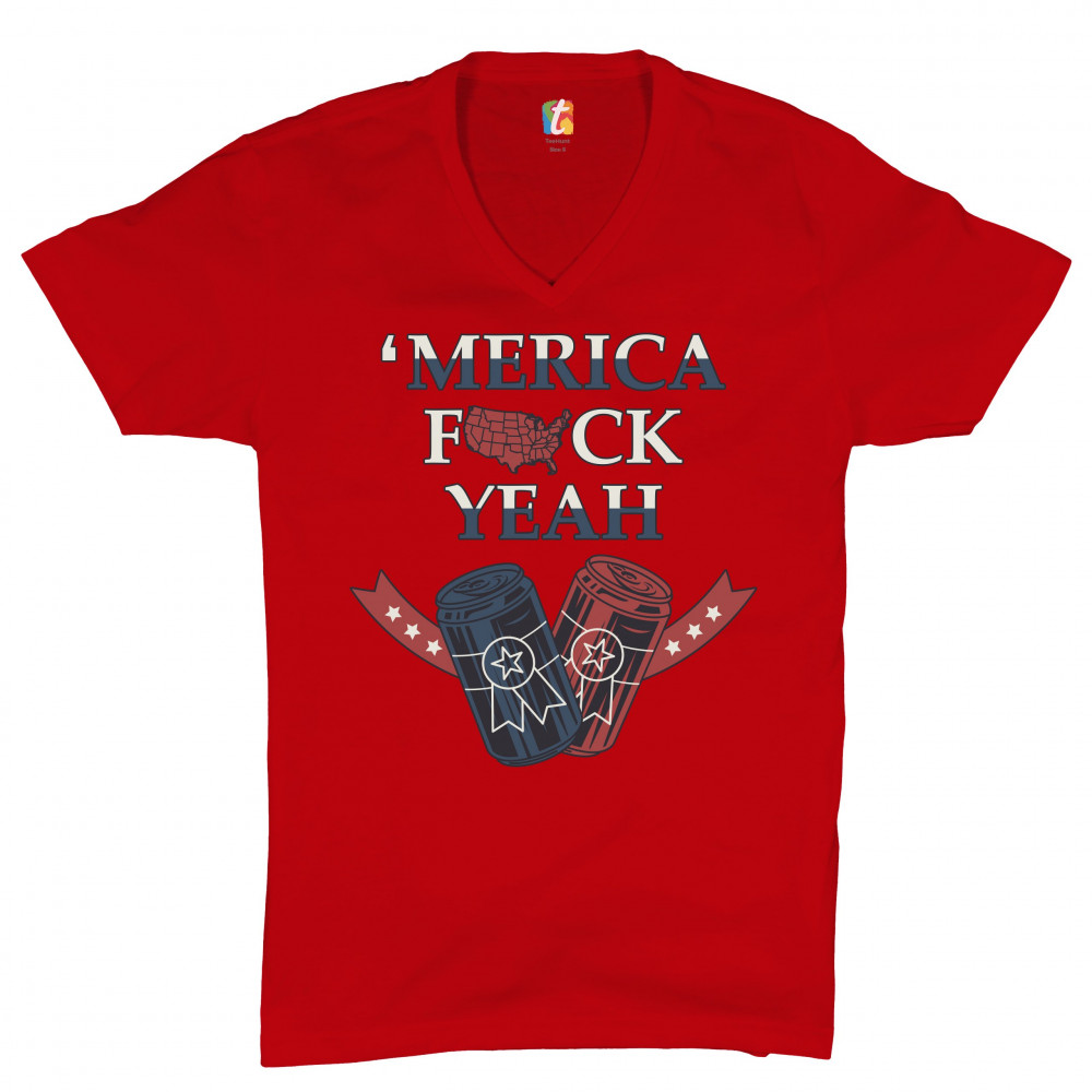 MERICA F*CK YEAH v-neck t-shirt patriotic american pride drinking beer tee red