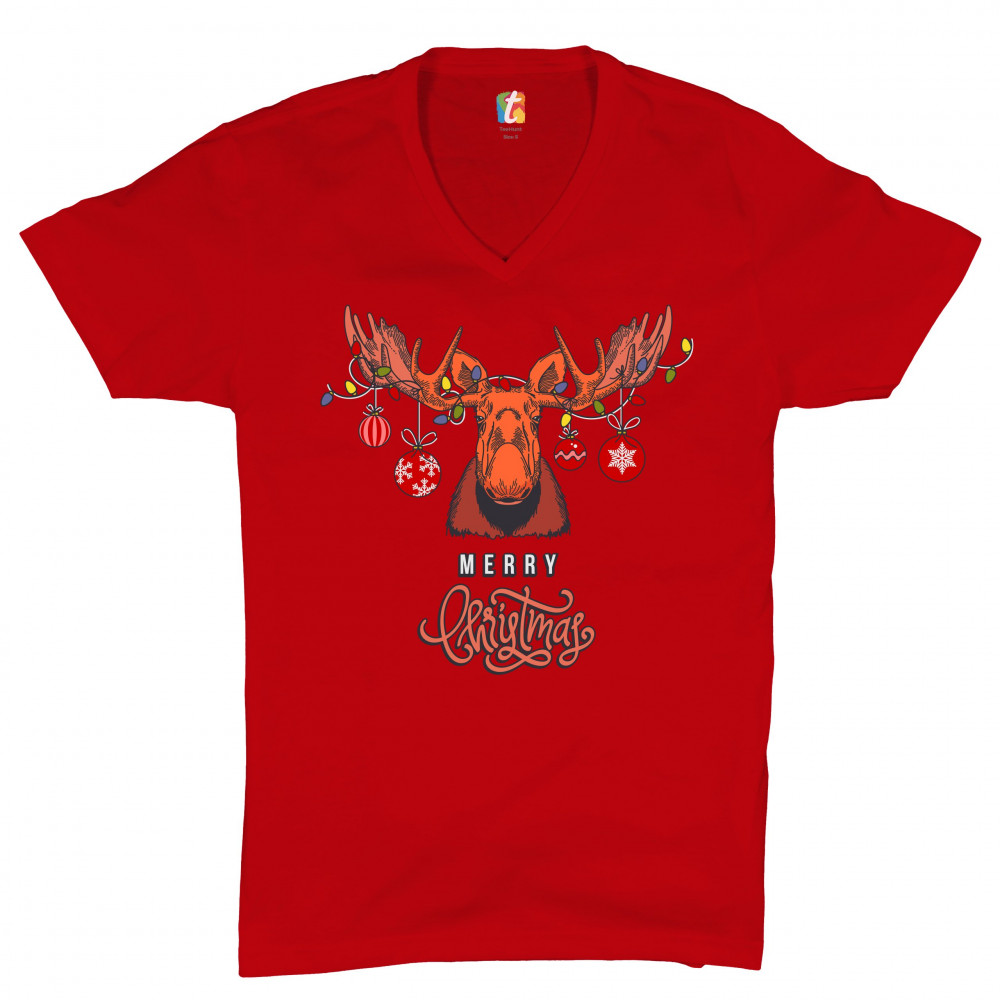 MERRY CHRISTMAS BUCK v-neck t-shirt reindeer rudolph holiday spirit tee red