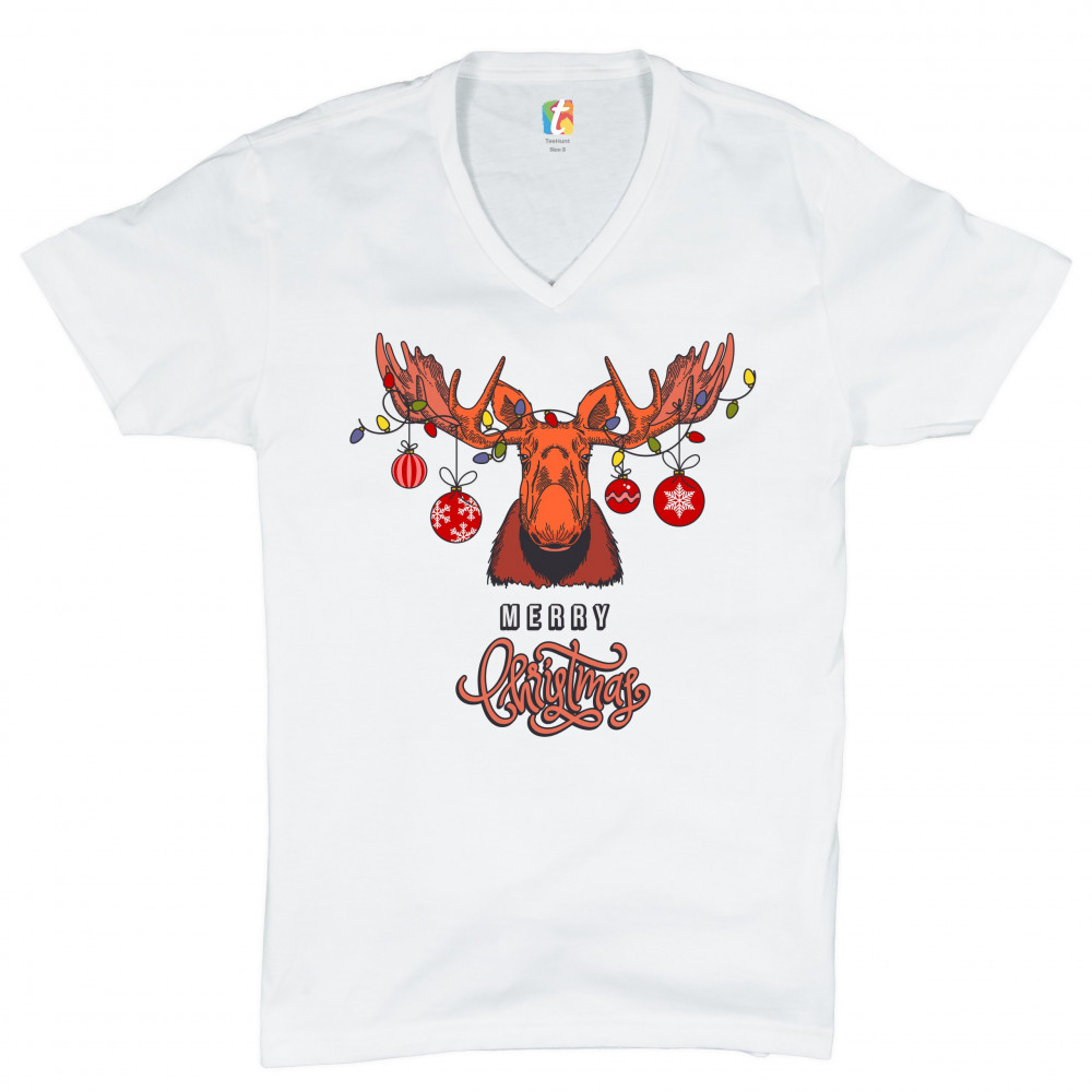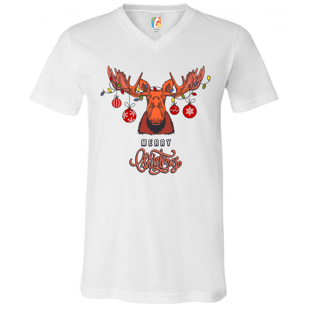 MERRY CHRISTMAS BUCK v-neck t-shirt reindeer rudolph holiday spirit tee white