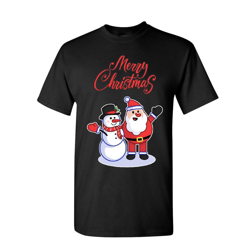 MERRY CHRISTMAS SANTA AND SNOWMAN merry christmas santa snowman hug t-shirt xmas holiday spirit mens tee shirt black