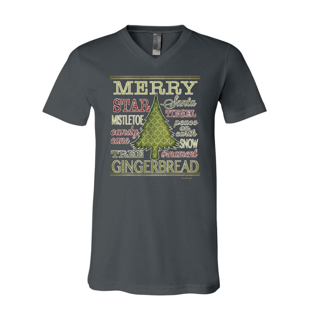 MERRY CHRISTMAS xmas tree v-neck t-shirt holiday spirit joy santa snow tee charcoal