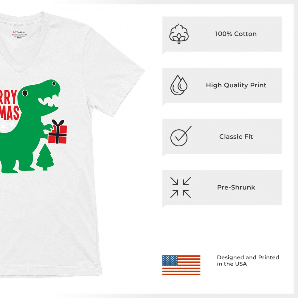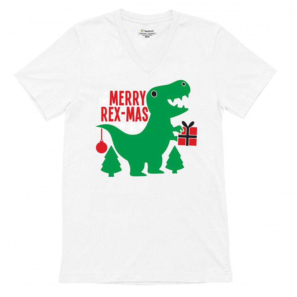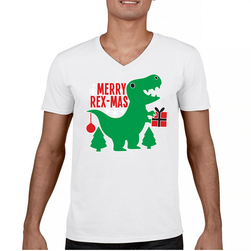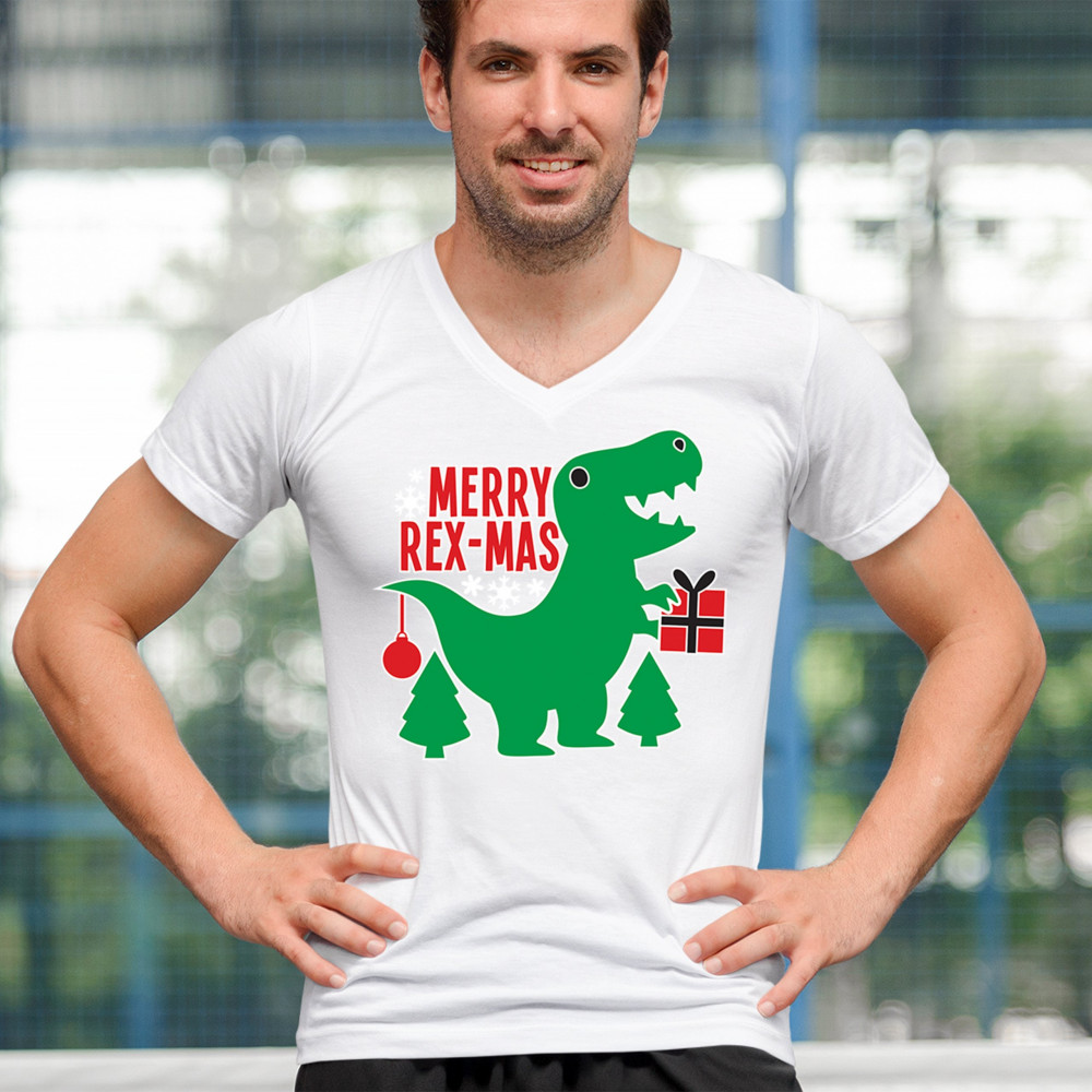 Merry Rex-Mas dinosaur Christmas design with a cute T-Rex, gift, and festive holiday details. Perfect for fun family celebrations and cheerful winter style.