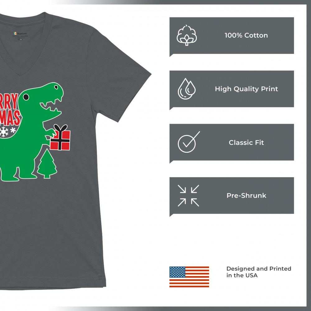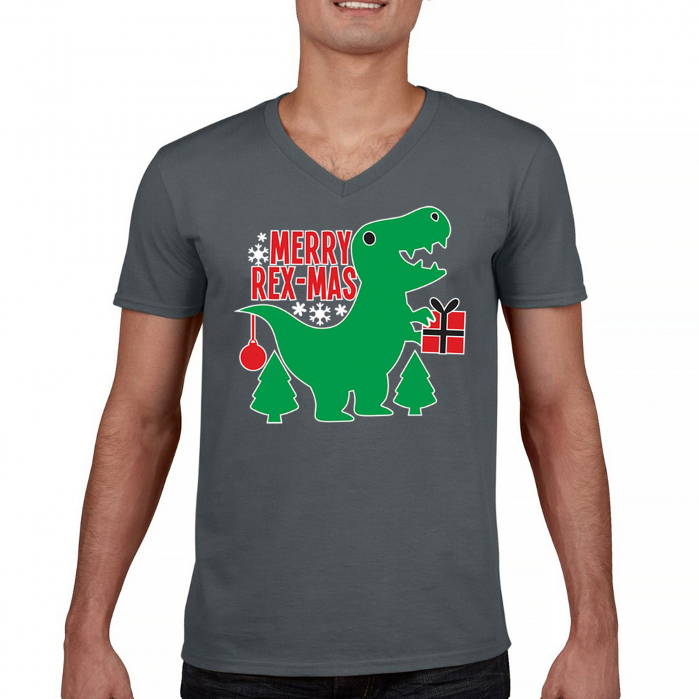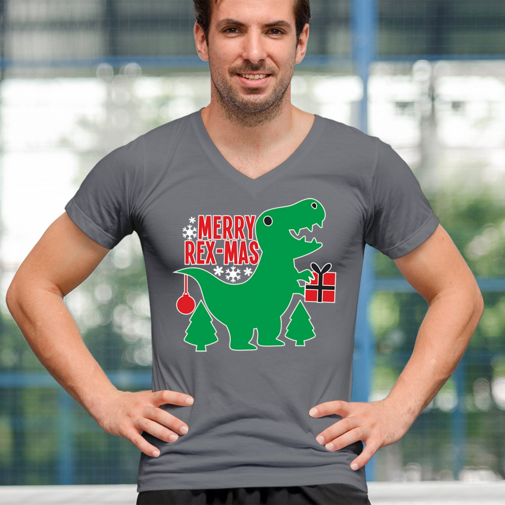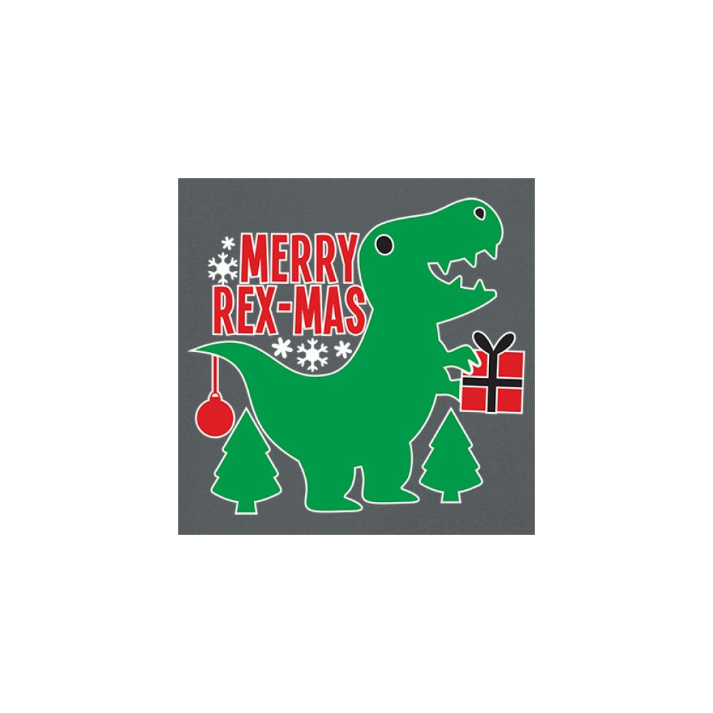 Merry Rex-Mas dinosaur Christmas design with a cute T-Rex, gift, and festive holiday details. Perfect for fun family celebrations and cheerful winter style.