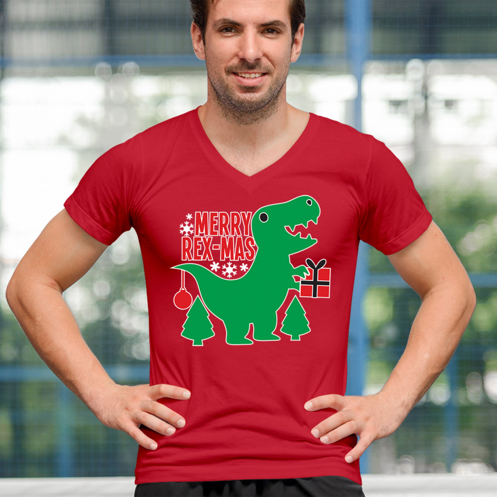 Merry Rex-Mas dinosaur Christmas design with a cute T-Rex, gift, and festive holiday details. Perfect for fun family celebrations and cheerful winter style.