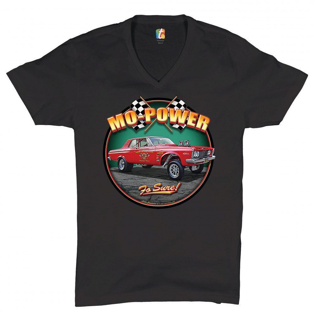 MO-POWER FO SURE! v-neck t-shirt american muscle car racing route 66 tee black