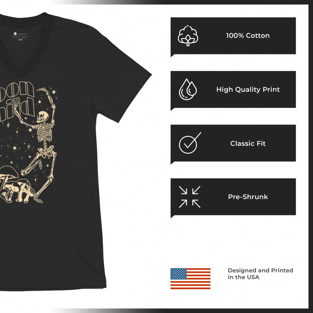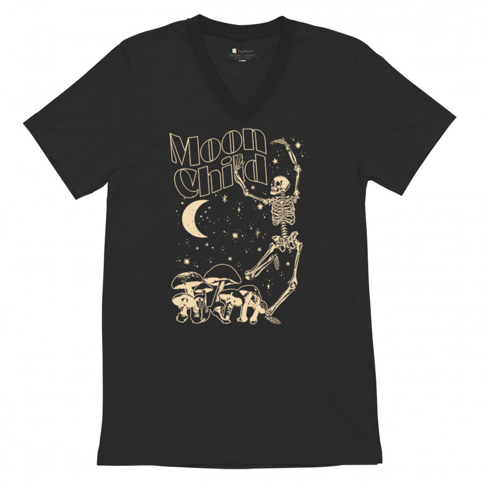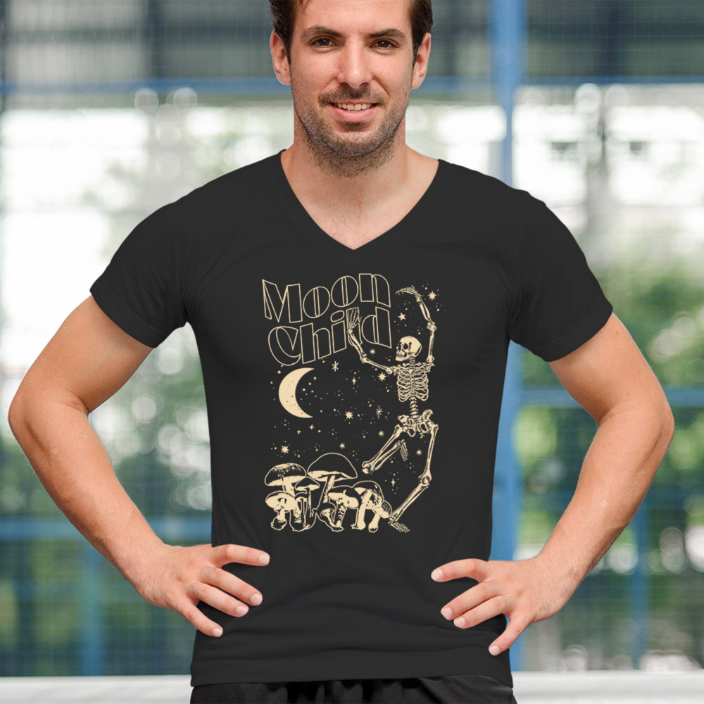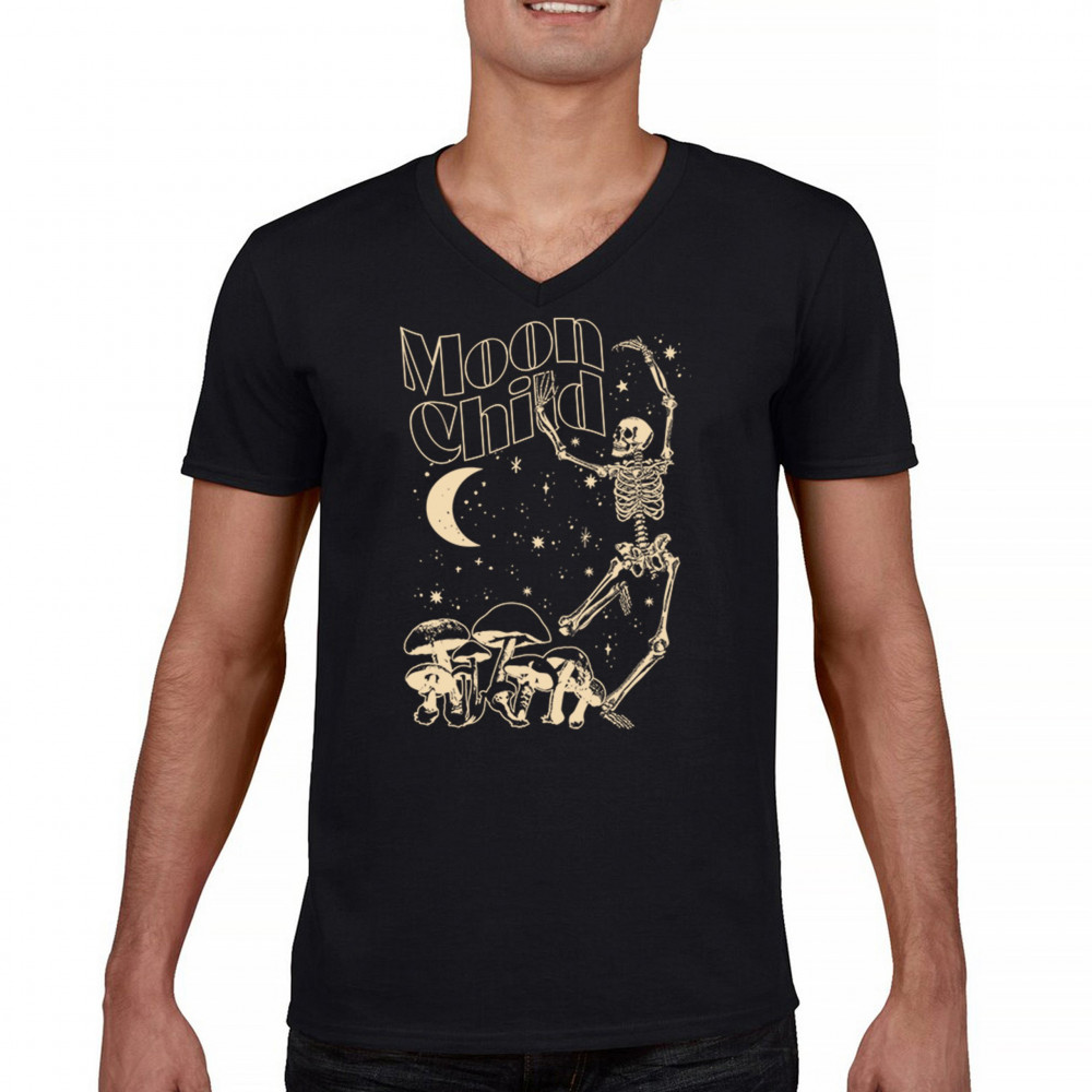 Mystical “Moon Child†design with skeleton, mushrooms, stars, and moon. Retro celestial vibes for dreamers, witches, and free spirits.
