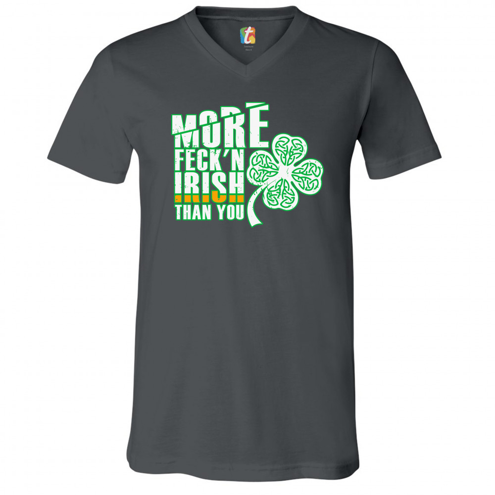 MORE FECK'N IRISH THAN YOU v-neck t-shirt st. patrick's day shamrock tee charcoal