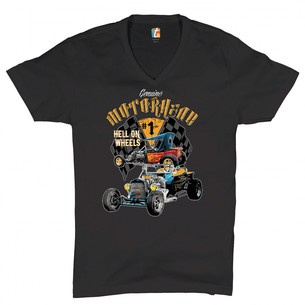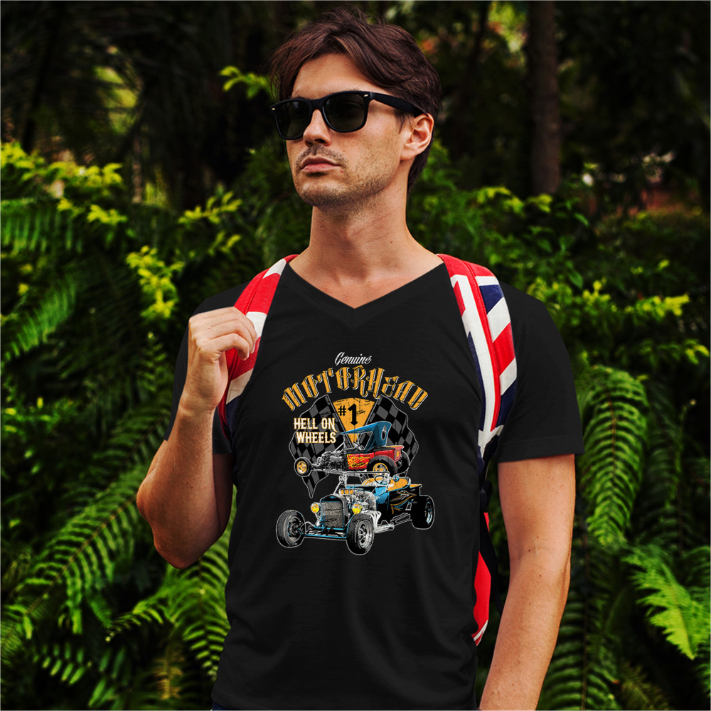MOTORHEAD HOT ROD v-neck t-shirt hell on wheels route 66 drag racing tee black