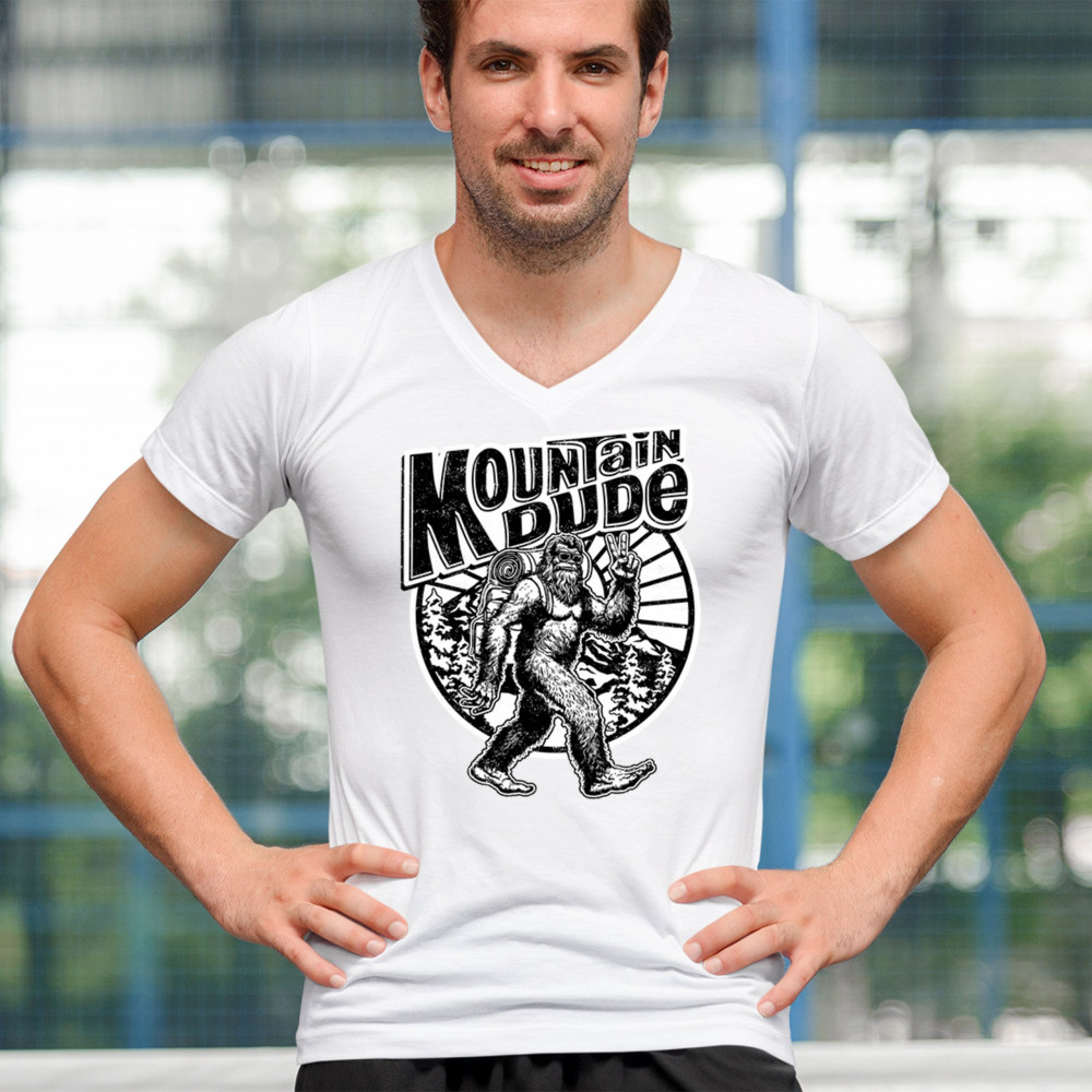 Celebrate outdoor adventures with the "Mountain Dude" design, featuring Sasquatch and mountain scenery. Perfect for hikers, campers, and Bigfoot fans.