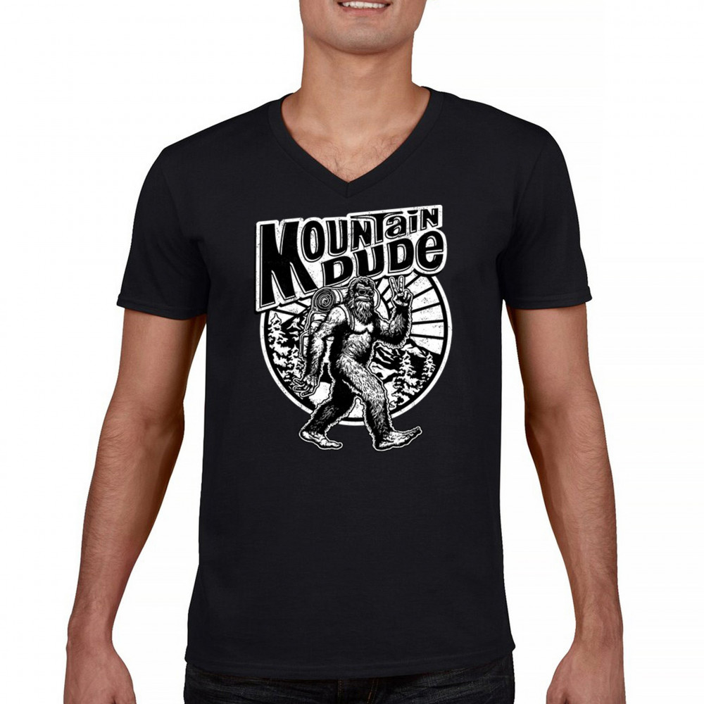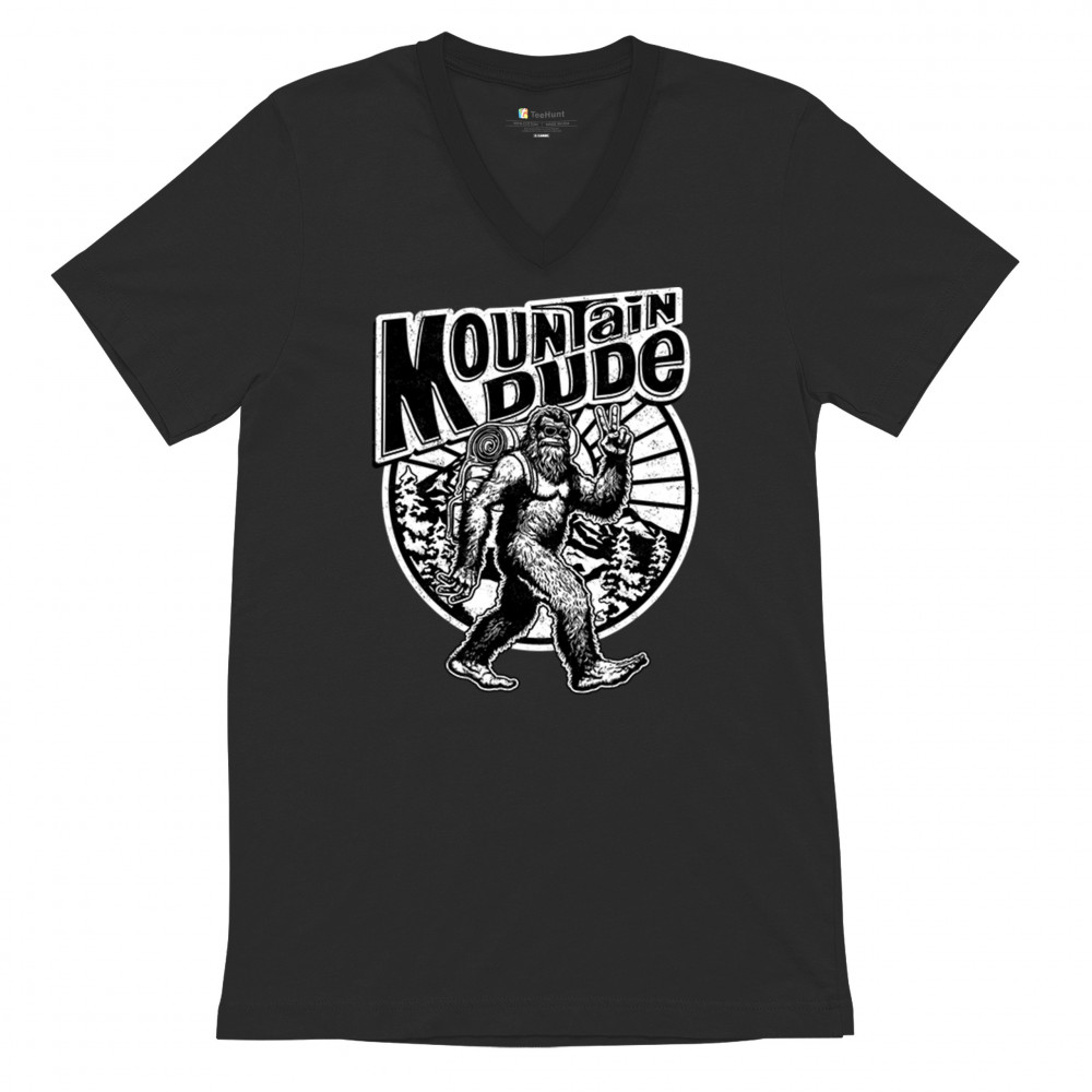 MOUNTAIN DUDE BIGFOOT v-neck t-shirt funny sasquatch hide & seek champ tee black