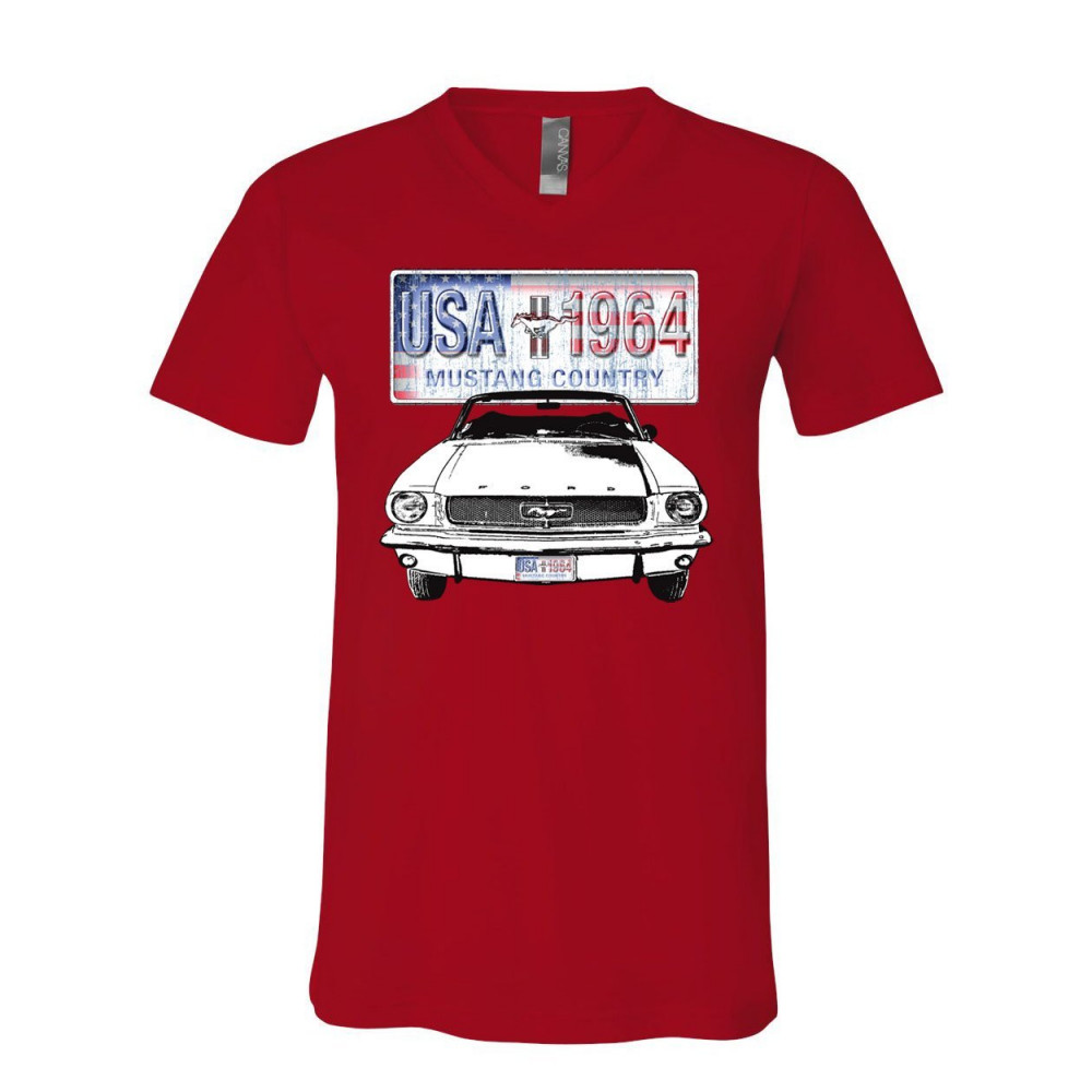 MUSTANG COUNTRY 1964 v-neck t-shirt ford legend usa american classic tee red