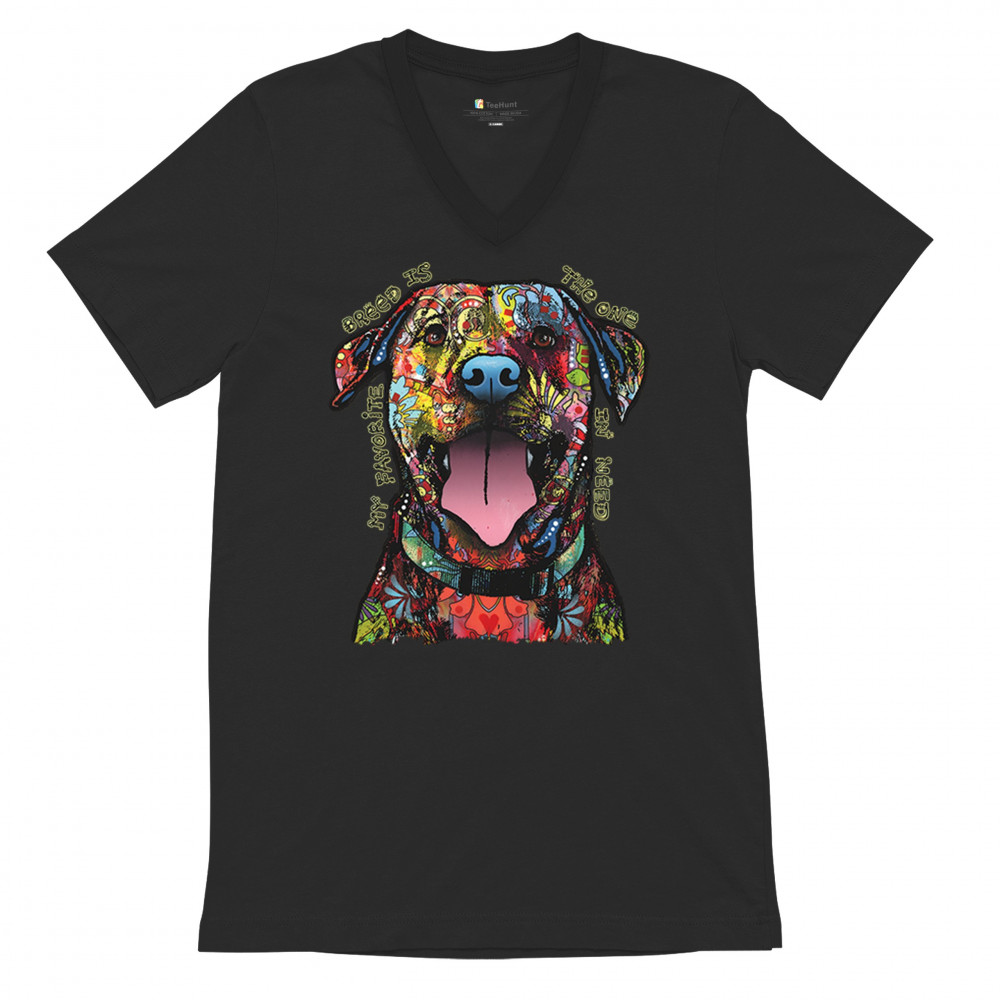 MY FAVORITE BREED IS THE ONE IN NEED v-neck t-shirt dean russo neon dog tee black