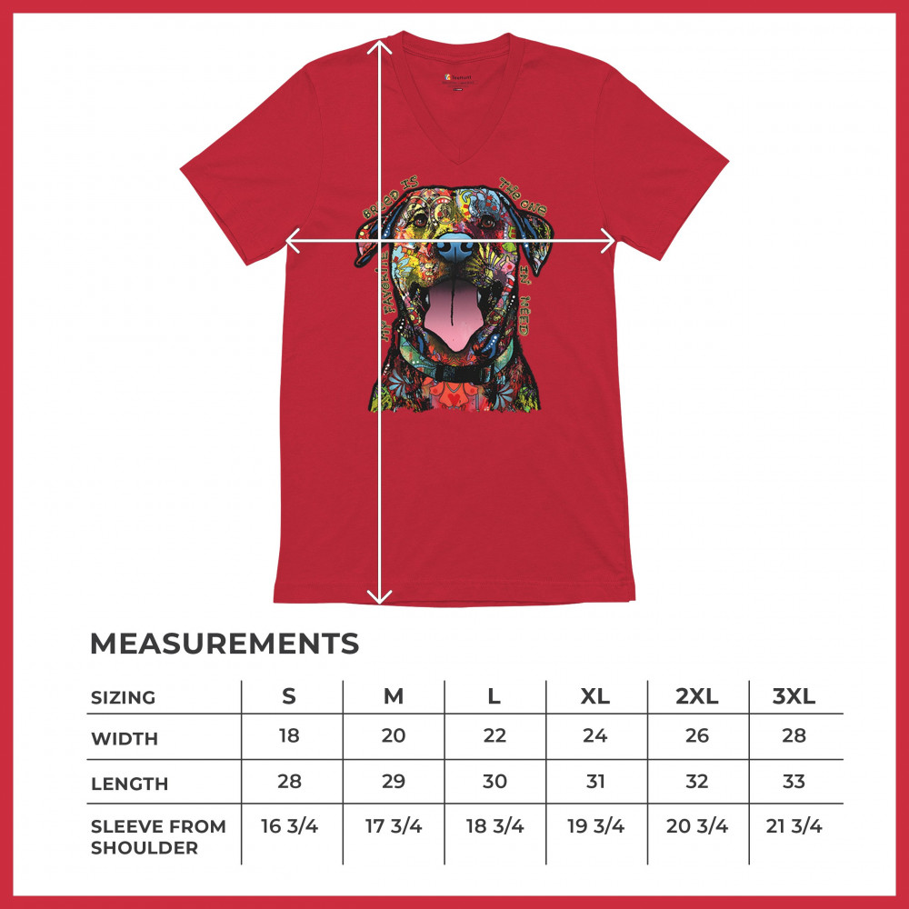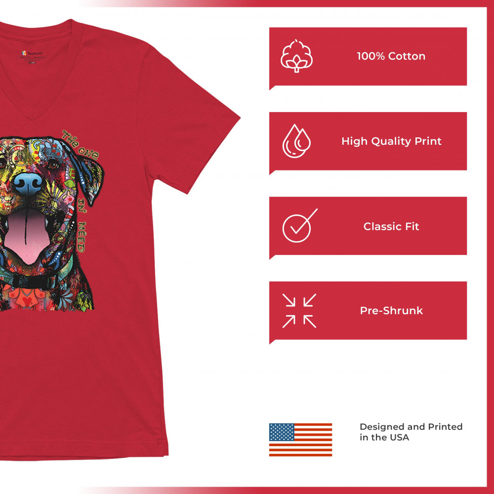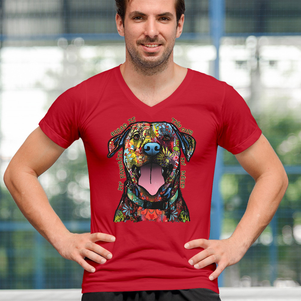 MY FAVORITE BREED IS THE ONE IN NEED v-neck t-shirt dean russo neon dog tee red